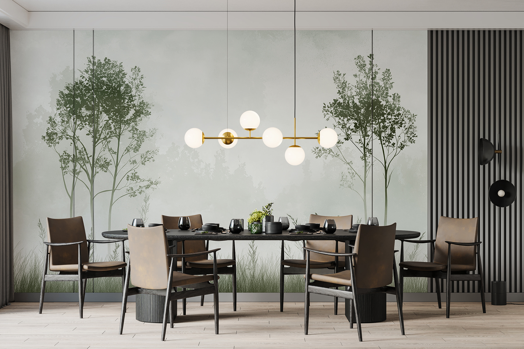 Představte si, že se probudíte do jemné, zasněné mlhy šeptající mezi stromy – přímo ve vašem obývacím pokoji. Tato nástěnná malba “Mlžná krajina” je jako vstup do klidného mlhavého rána, aniž byste museli opustit svůj dům. Působí to jako příroda, skoro jako by si stromy sdělovaly tajemství, která zná jen vítr. Ideální pro chvíle, kdy si životní chaos říká o jemné zastavení. Hoďte si před sebe pohodlné křeslo, popíjejte čaj a nechte své myšlenky bloudit. Mísí se v něm divoká příroda s útulnou domáckou atmosférou a vytváří klidný únik mezi vaše zdi. Stačí přidat představivost.