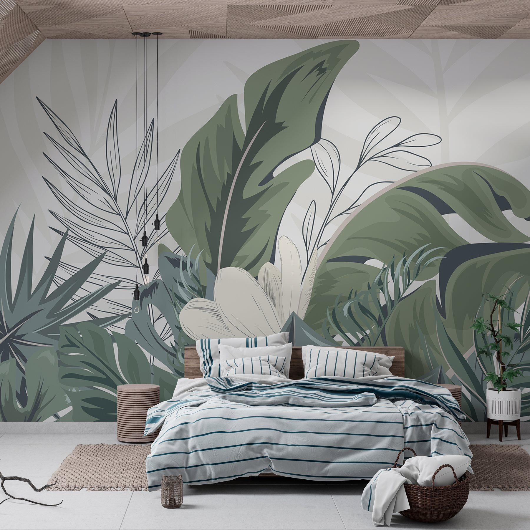 Proměňte jakýkoli prostor v klidné útočiště pomocí této úžasné nástěnné malby “Přírodní listí v harmonii a rovnováze”. Představte si, že každé ráno vstoupíte do svěžího ráje, kde vás živá zeleň a jemné textury vybízejí k odpočinku. Tato nástěnná malba dokonale kombinuje tropické vibrace s uklidňující estetikou, takže je fantastickým pozadím pro klidné večery nebo živá setkání. Představte si, jak popíjíte kávu obklopeni krásou přírody nebo hostíte přátele v prostředí připomínajícím oázu. Je to jako pozvat si kousek přírody přímo k sobě domů – bez hmyzu! Je ideální do obývacích pokojů, ložnic nebo i tvůrčích prostor a jistě vzbudí radost a trochu závisti u hostů. Rovnováha, harmonie a dotek přírody – co víc si může někdo přát?
