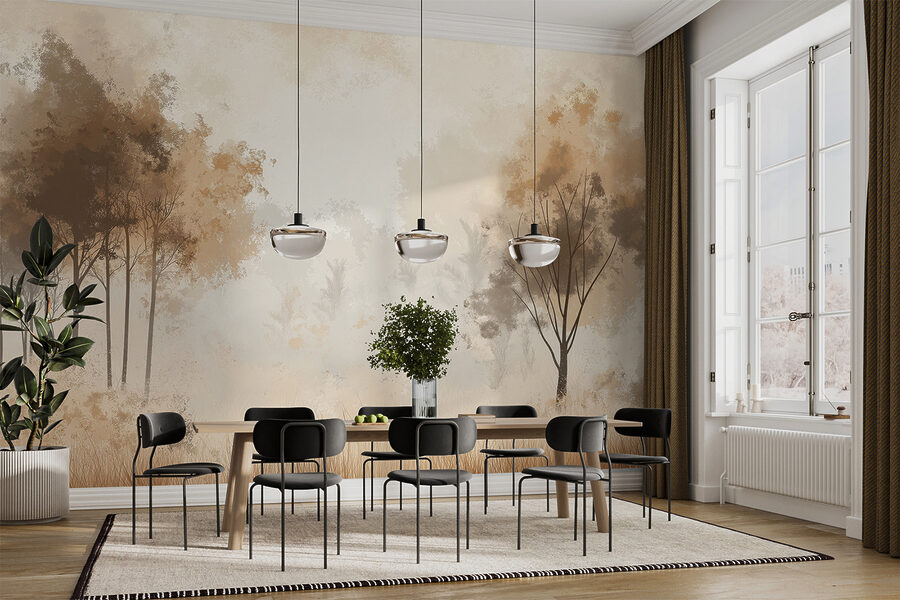 Tady je něco zvláštního: nástěnná malba zachycující mlžný les – stromy se táhnou vzhůru, kolem nich se kroutí mlha, tráva se jemně pohupuje. Ideální pro proměnu každé místnosti v šepotavé lesní útočiště. Je to jako vstoupit přímo do pohádky, ale bez mluvících zvířat (bohužel). Ráno s kávou v ruce můžete téměř cítit vůni rosy. Milovníci přírody, vaše prázdná stěna právě našla své poslání. Představte si hosty, kteří vejdou dovnitř a s pokleslou čelistí se ptají: “Kde je Narnie?”. Je to atmosféra, ne jen nástěnná malba.