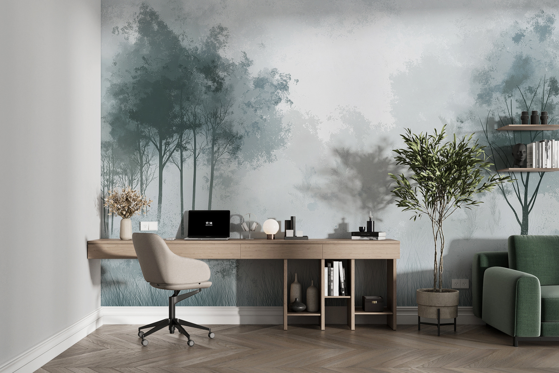 Představte si, že se každý den probouzíte do mlhavého rána – aniž byste potřebovali deštník. Tato nástěnná malba “Mlžný les se stromy” zahalí váš pokoj do klidu a nádechu tajemna, jako byste vstoupili do zasněné lesní filmové scény. Je ideální pro chvíle, kdy si potřebujete odpočinout od každodenního shonu. Možná dokonce začnete očekávat, že na vás vyskočí lesní bytosti a pozdraví vás! Jemná atmosféra a klidná nálada, díky níž se i ten nejrušnější domov bude cítit jako klidný únik.