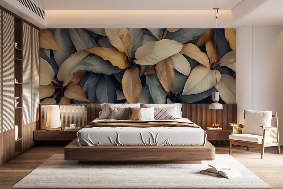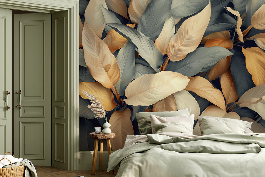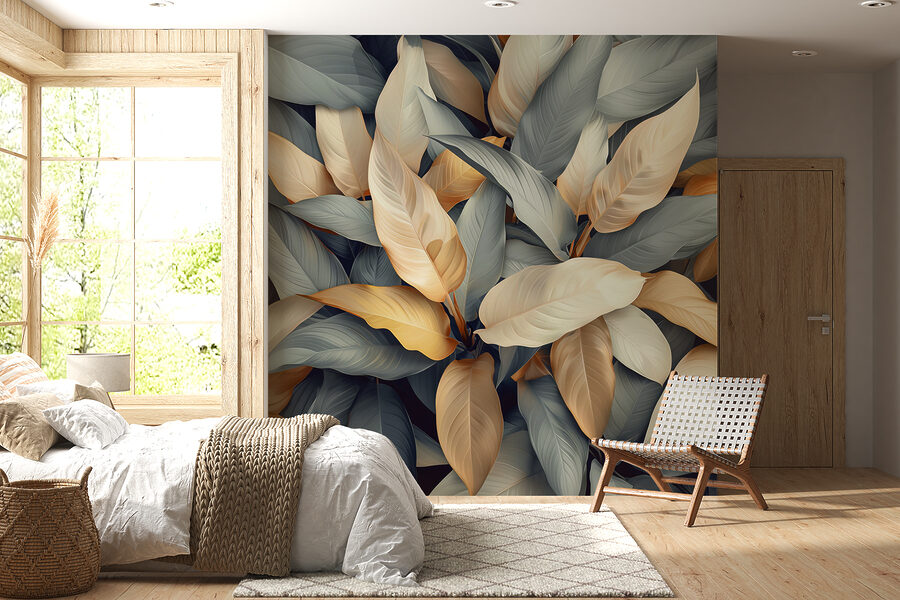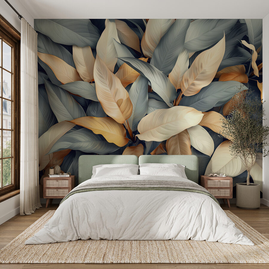 Proměňte svůj prostor pomocí této úžasné nástěnné malby s barevnými listy. Představte si, že vejdete do místnosti, kde příroda ožije a zahalí vás do tepla a klidu. S každým pohledem ty jemné odstíny krémové a zlaté tančící na pozadí chladných tónů vytvářejí uklidňující a zároveň živou atmosféru. Je to jako přenést do místnosti venkovní prostředí bez rizika zalévání jediné rostliny! Tato nástěnná malba je ideální do útulného čtecího koutku nebo živé kanceláře a díky ní se každý den může zdát jako osvěžující procházka svěží zahradou. Směs barev jemně zvedá náladu a vzbuzuje inspiraci, takže se dokonale hodí pro každého, kdo si chce vytvořit příjemné útočiště. Nedivte se, když se přistihnete, že se uprostřed listí zasníte – je to prostě jedna z těch nástěnných maleb, které vás vtáhnou!