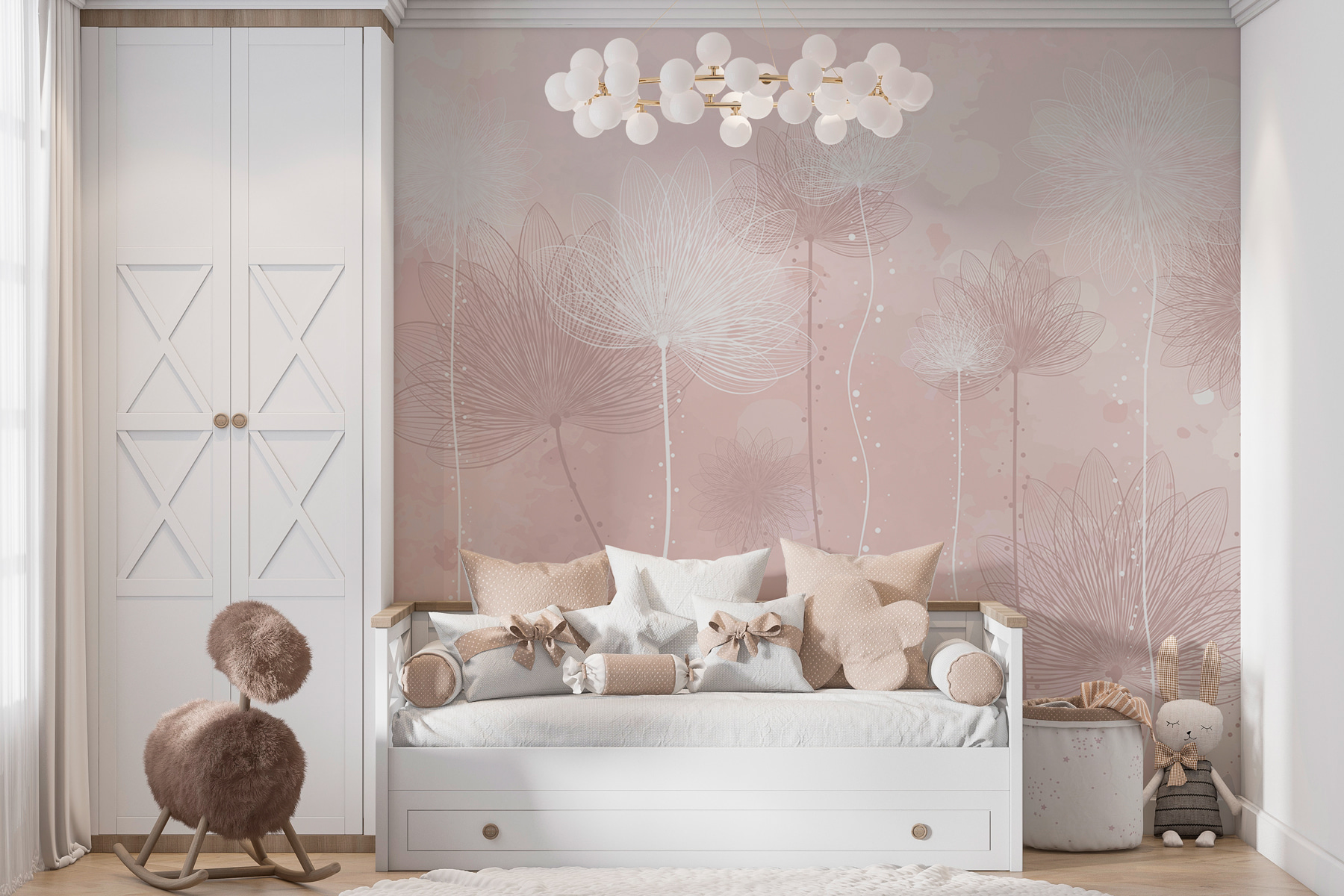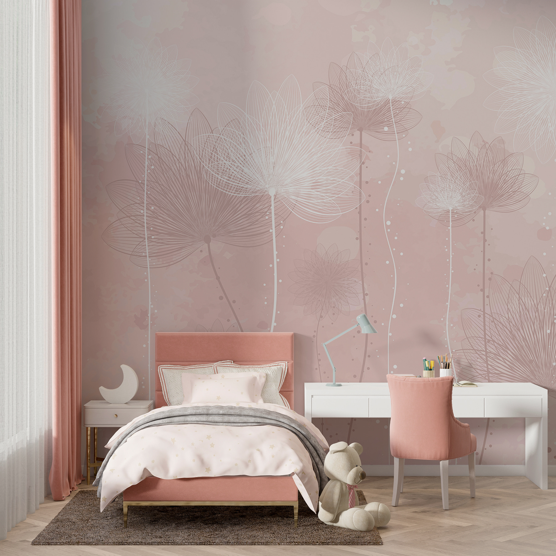 Představte si, že vstoupíte do místnosti, kde se na stěnách objevují piruety elegance – ano, to je “Elegantní květiny tančící v rumělce”. Tato nástěnná malba je jako jemný šepot jara v akvarelu s pampeliškami připravenými k letu. Je to sen milovníků přírody a tvoří dokonalé pozadí pro líná nedělní rána. Pociťte, jak vás jemné odstíny obklopují jako příjemná deka. Návštěvníci se možná budou divit, že máte někde ukrytou tajnou zahradu. Dodá vám charakter, konverzaci a trochu rozmarnosti – vaše stěny vám poděkují!