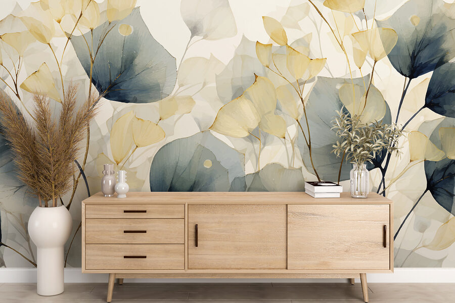 Proměňte jakoukoli místnost pomocí okouzlující nástěnné malby “Elegantní tanec přírodních barev”, kde se jemné listí setkává s akvarelovým snem. Tento krásný design přináší osvěžující nádech, díky němuž se budete cítit jako na jaře po celý rok. Představte si, jak popíjíte čaj obklopeni půvabnými listy v modrých a jemně zlatých barvách. Není to jen dekorace; vytváří atmosféru. Ať už se jedná o útulný čtecí koutek nebo živý obývací pokoj, tato nástěnná malba vybízí ke klidu i kreativitě. Nechte přírodu proudit do svého prostoru a sledujte, jak vyvolává radost, inspiraci a možná i trochu snění.