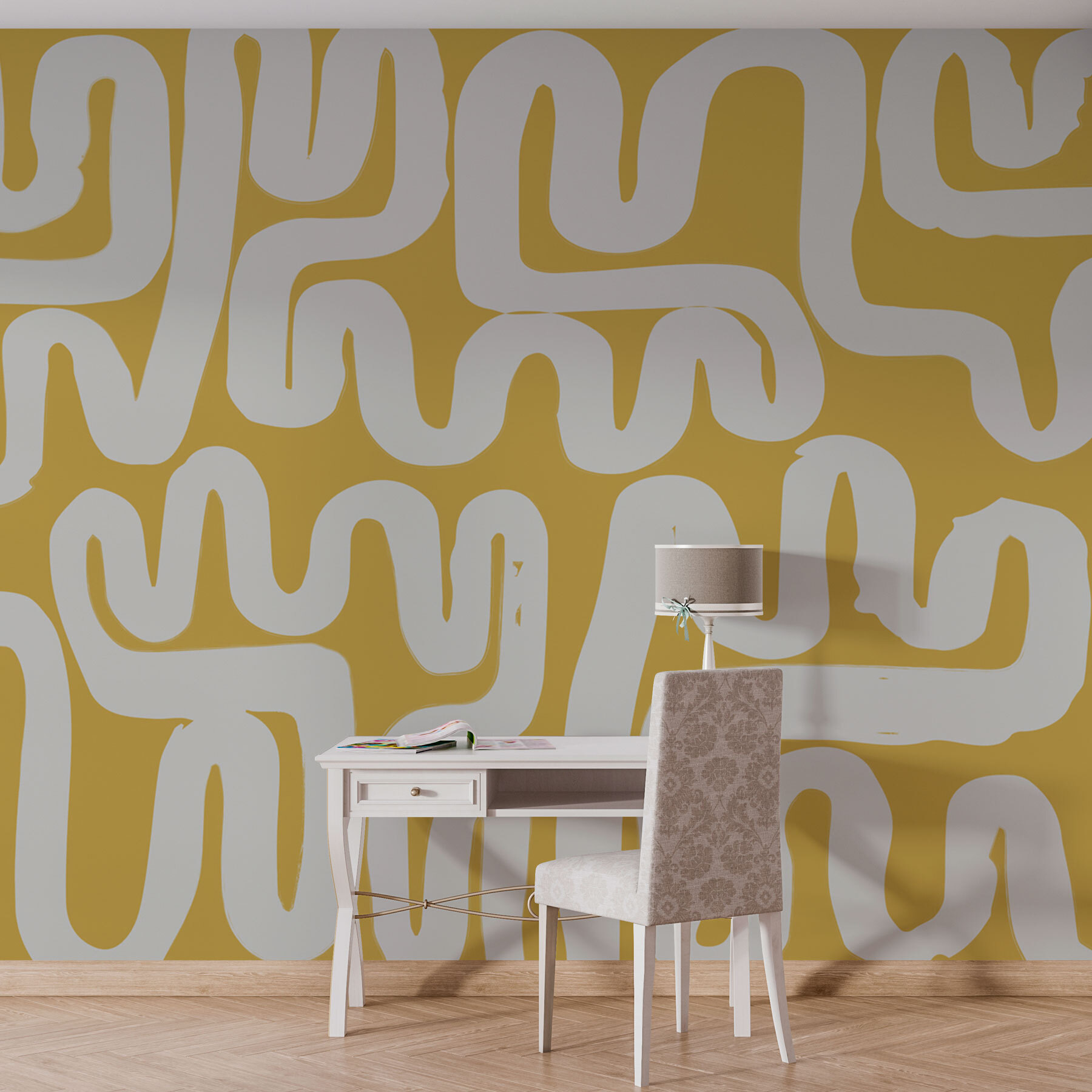 Rozjasněte jakýkoli prostor pomocí nástěnné malby Bílé a žluté bludiště! Tento hravý design kombinuje jasně žlutou barvu s plynulými bílými liniemi a vytváří tak pocit pohybu, který působí jako veselé bludiště. Představte si, že vstoupíte do místnosti, kde se život zdá být o něco zábavnější. Je ideální pro útulný čtecí koutek, domácí kancelář nebo dokonce živý obývací pokoj – protože kdo by nechtěl, aby se hosté cítili, jako by procházeli veselou malou skládačkou?