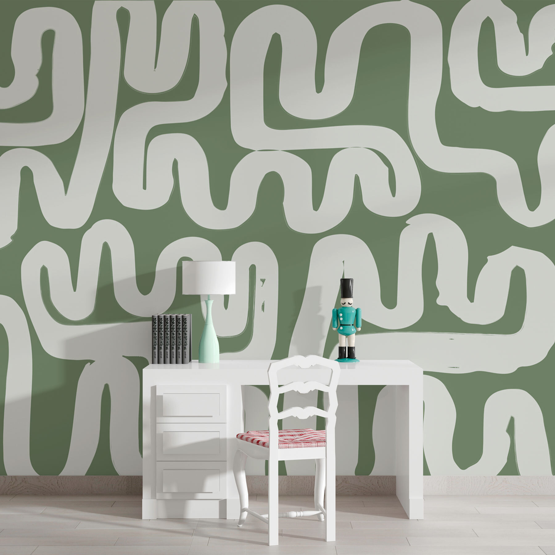 Chtěli jste někdy zeď, která vzbudí trochu zvědavosti? Tato nástěnná malba “Bludiště s bílými čarami” to splňuje. Je to jako mít hravou skládačku přímo ve svém obývacím pokoji. Ideální pro ty, kteří mají rádi čistý vzhled s nádechem. Představte si to: popíjíte ranní kávu a oči bloudí po těchto klikatých cestičkách. Relaxační, a přesto fascinující. Určitě se s vámi dá mluvit. Kdo by řekl, že bílé linie mohou dodat tolik osobitosti? Je to jako svérázné pojetí každodenní elegance – nečekané bludiště, které čeká na prozkoumání.