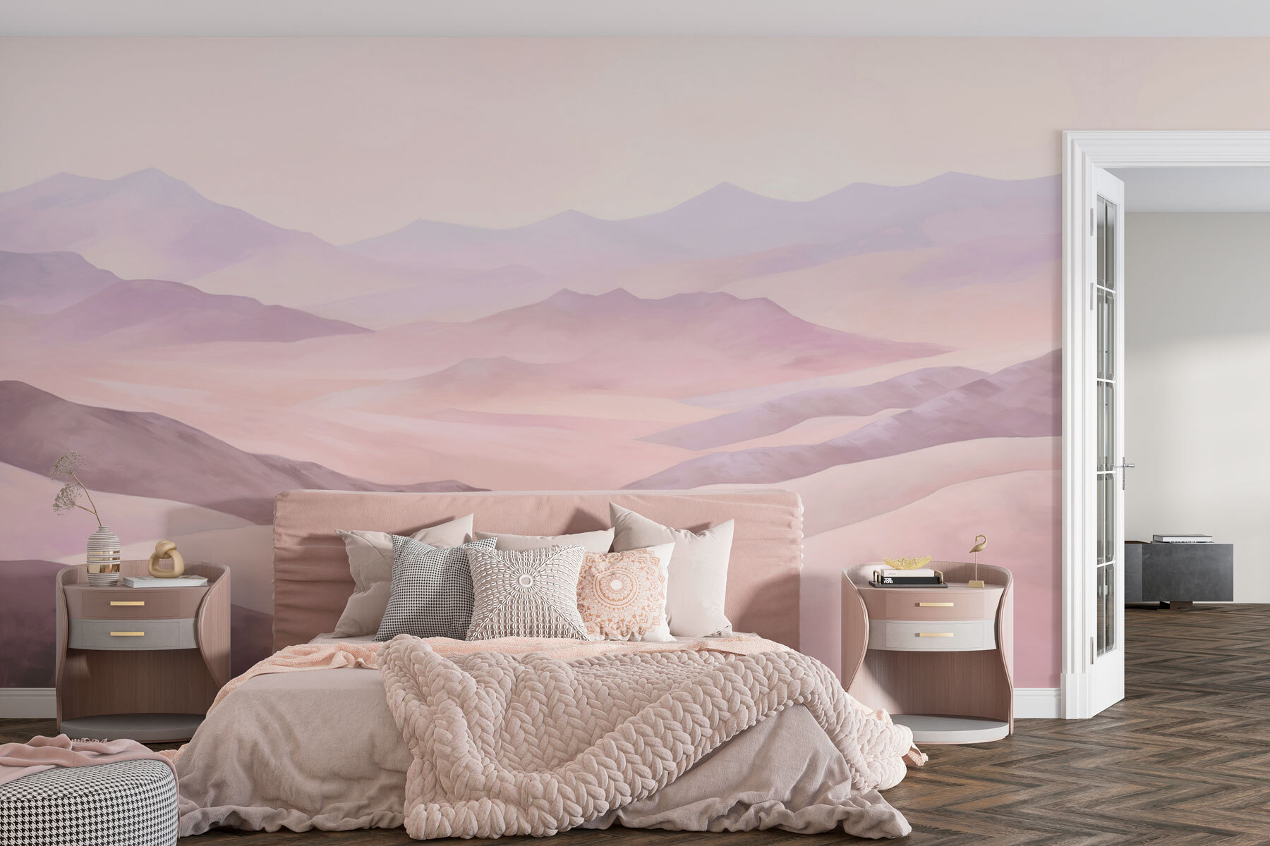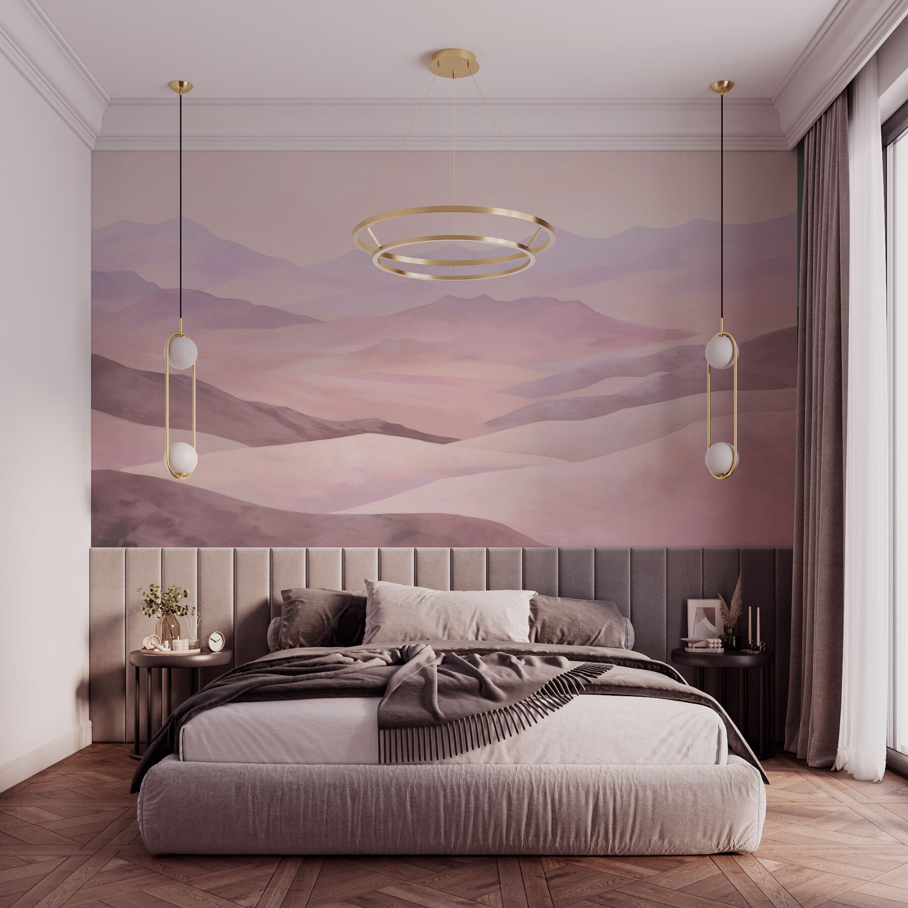 Představte si, že se uvelebíte ve svém oblíbeném křesle a díváte se na úžasnou akvarelovou fresku, která se převaluje po stěně jako jemná, zasněná krajina. Je to víc než jen krásné kopce a tiché hory – je to, jako by se příroda rozhodla přijít si popovídat dovnitř. Ideální pro každého, kdo sní o útěku do klidných, široce otevřených prostor, aniž by musel opustit svůj obývací pokoj. Jemné, tlumené barvy přinášejí uklidňující atmosféru a zabalí vás do útulného, malebného objetí. Ať už sníte, nebo podřimujete, tato nástěnná malba vám kryje záda!