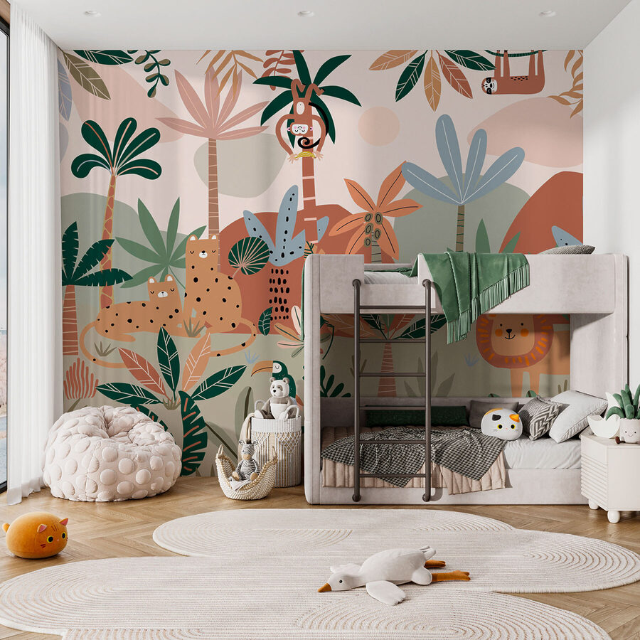 Vydejte se do džungle, aniž byste museli opustit svůj dům! Tato hravá fototapeta je jako mini safari dobrodružství ve vašem obývacím pokoji. Představte si veselé lvy, rozkošné lenochody a drzé opice, kteří vykukují skrz hustý baldachýn plný zářivých zelených a zemitých tónů. Má tu zábavnou, nepředvídatelnou atmosféru, která vás rozesměje – jako když najdete svůj dávno ztracený oblíbený svetr. Ideální do dětských pokojů nebo, buďme upřímní, pro každého, kdo má rád trochu rozmaru. Je to kapka divočiny, která rozzáří vaši každodenní rutinu.