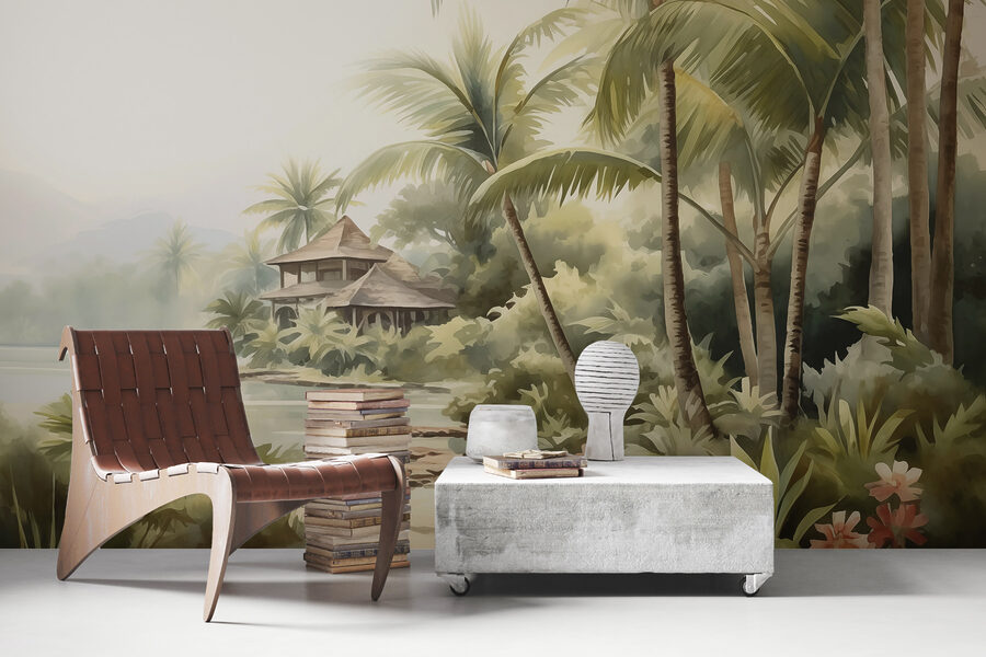 Představte si, že vejdete do obývacího pokoje a přivítá vás váš vlastní tropický ráj. Tato akvarelová nástěnná malba se snovým domem zasazeným mezi palmami nevisí jen na zdi – promění váš prostor v exotický únik. Možná právě pocítíte teplý vánek nebo chuť popíjet ovocný nápoj! Tato nástěnná malba je ideální pro přidání kapky rozmarnosti a klidu a je dokonalým začátkem konverzace. Navíc působí uvolněnou atmosférou, jako by se váš domov rozhodl, že potřebuje trvalou dovolenou. Kdo by to nechtěl?