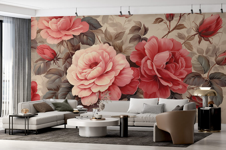 Proměňte každou místnost v kvetoucí ráj s nástěnnou malbou “Elegantní květy zdobí nadčasové plátno”. Představte si, že vstoupíte do prostoru, kde vás nadměrné růže v odstínech růžové a karmínové obklopí jako hřejivá náruč. Tato nástěnná malba nejen zdobí stěnu, ale vybízí vás k posezení, popíjení kávy a možná i ke snění. Je ideální pro ty útulné čtecí koutky nebo živé jídelny. Představte si rodinná setkání pod tímto květinovým zázrakem – všichni se usmívají, obklopeni krásou. Tato nástěnná malba slibuje vnést kouzlo přírody do interiéru a bez námahy spojit eleganci s veselým nádechem. Už žádné nudné stěny, je čas nechat rozkvést kreativitu!