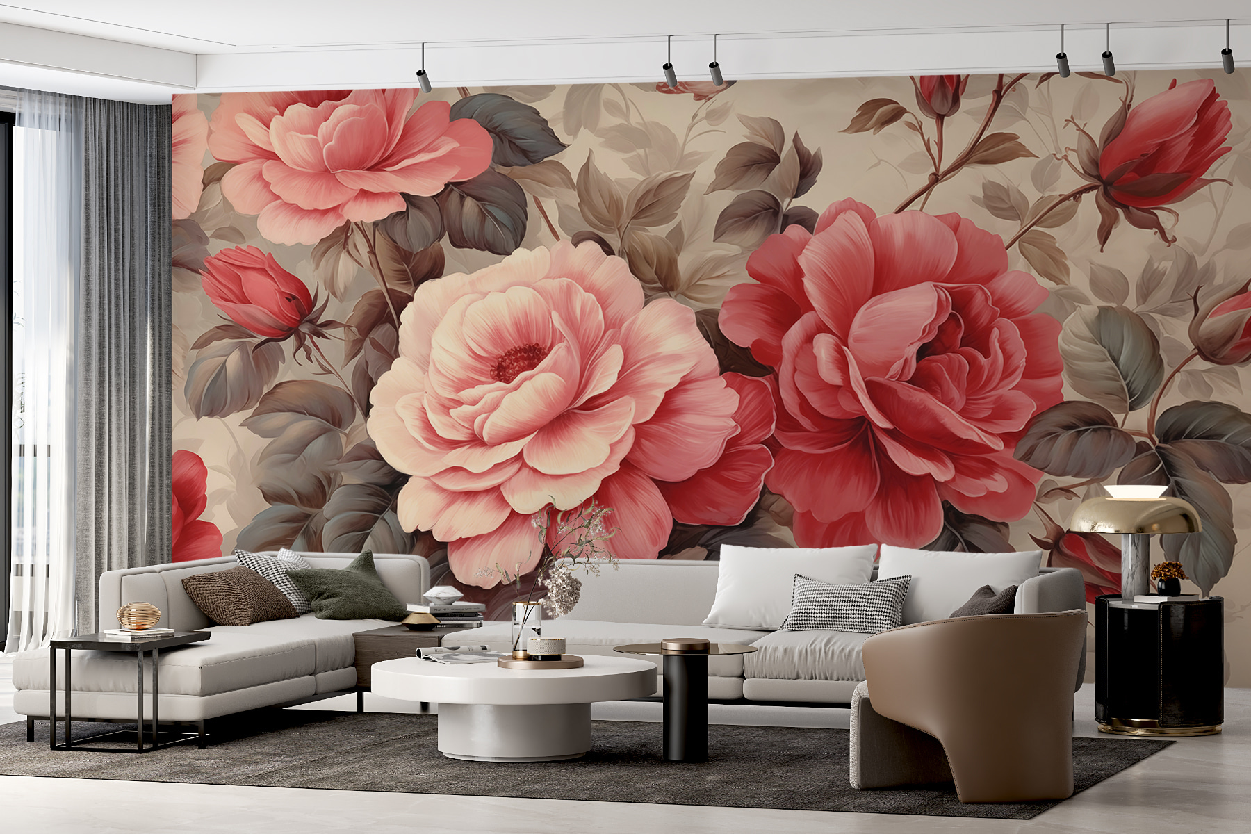 Proměňte každou místnost v kvetoucí ráj s nástěnnou malbou “Elegantní květy zdobí nadčasové plátno”. Představte si, že vstoupíte do prostoru, kde vás nadměrné růže v odstínech růžové a karmínové obklopí jako hřejivá náruč. Tato nástěnná malba nejen zdobí stěnu, ale vybízí vás k posezení, popíjení kávy a možná i ke snění. Je ideální pro ty útulné čtecí koutky nebo živé jídelny. Představte si rodinná setkání pod tímto květinovým zázrakem – všichni se usmívají, obklopeni krásou. Tato nástěnná malba slibuje vnést kouzlo přírody do interiéru a bez námahy spojit eleganci s veselým nádechem. Už žádné nudné stěny, je čas nechat rozkvést kreativitu!
