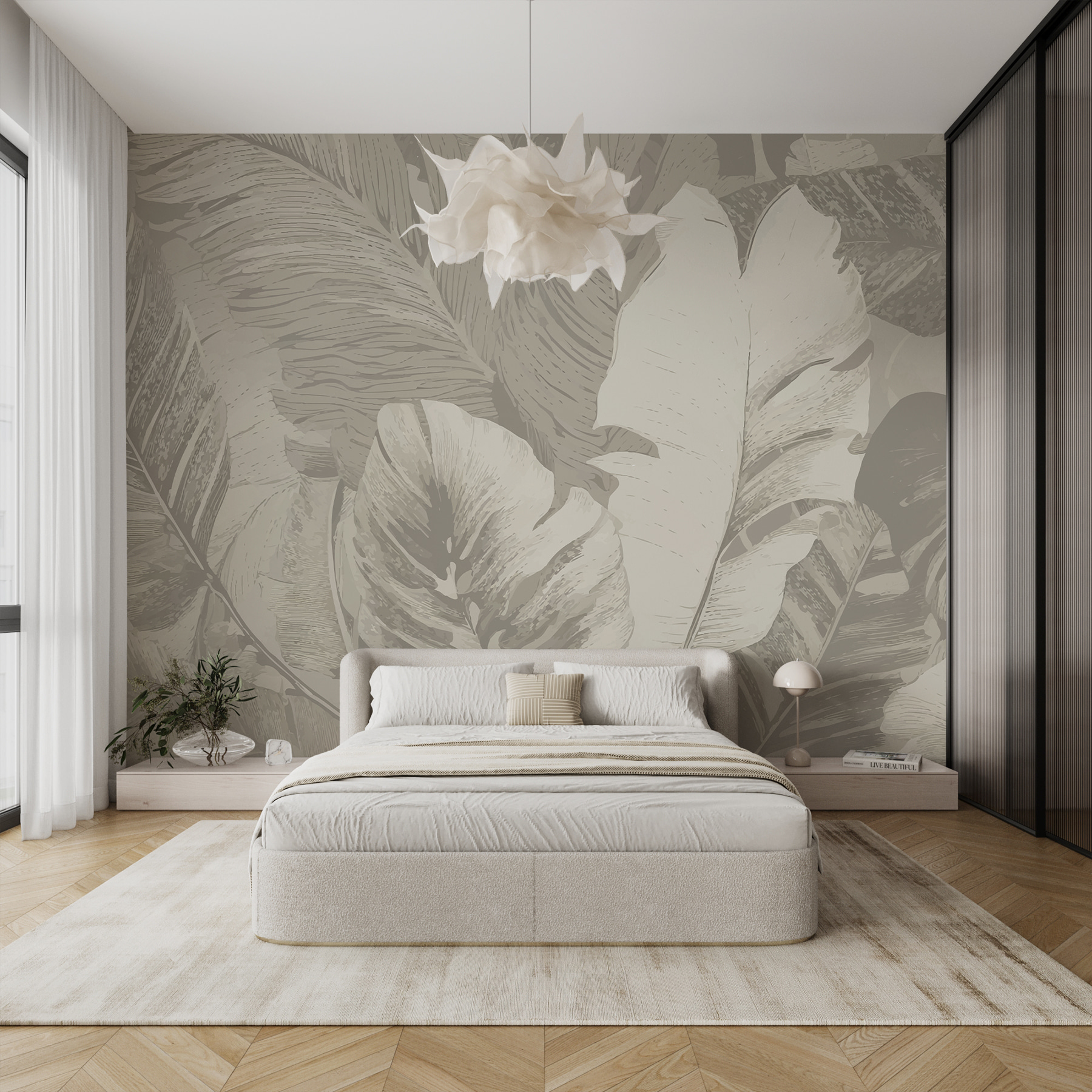 Představte si, že vejdete do místnosti, kde jemné odstíny přírody v okamžiku přinesou klid. Tato nástěnná malba je jako jemný šepot z tropického lesa, kde si palmové listy a stromy džungle hrají na schovávanou v jemných, uklidňujících barvách. Je to téměř jako tajný úkryt přímo na vaší zdi. Ideální pro líné nedělní odpolední zdřímnutí nebo jen útulné povídání s přáteli. Textury připomínající dřevo dodávají hřejivý nádech, takže se každý prostor bude cítit jako klidné útočiště – bez otravných brouků a vlhkosti! Dotek elegance přírody pro vaše každodenní útočiště.