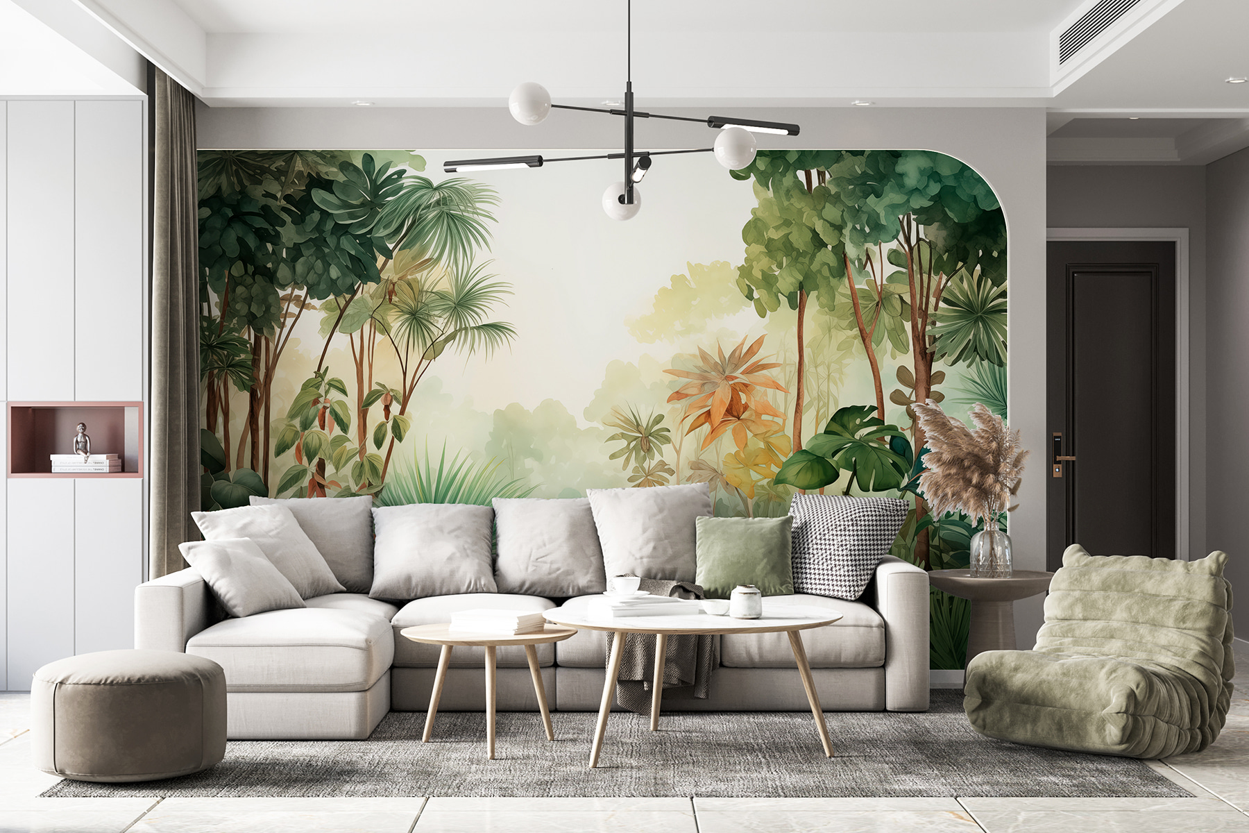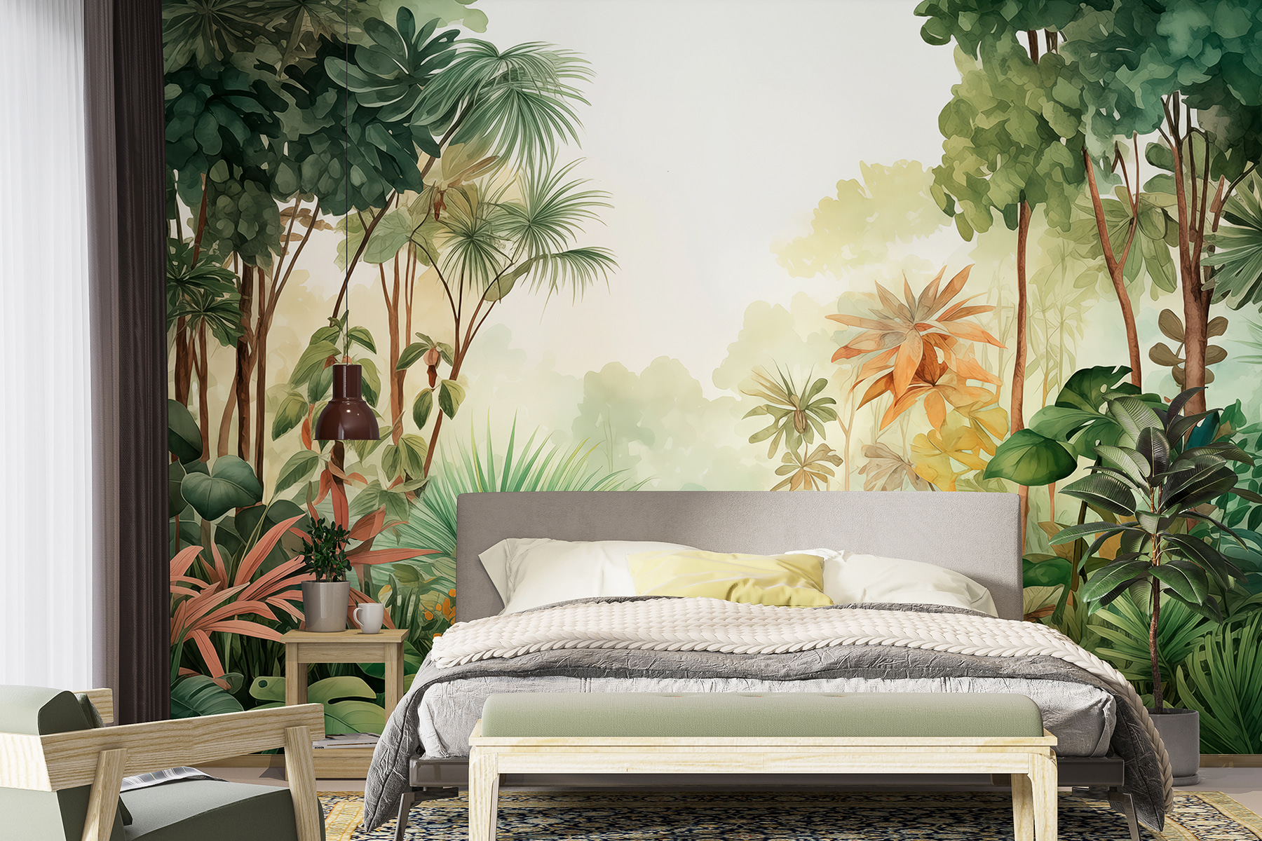 Představte si, že vstoupíte do místnosti a okamžitě se přenesete do klidného akvarelového lesa. Tato nástěnná malba přenese atmosféru svěží džungle přímo na vaše stěny! Není to jen obraz – je to útěk. Zelené odstíny jako by našeptávaly klid – ideální pro odpočinek po hektickém dni. Představte si deštivý den schoulený s oblíbenou knihou, nebo dokonce uspořádejte setkání s přáteli, kteří nepřestanou obdivovat vaši lesní oázu. Stěny jako by vás jemně objímaly listím.