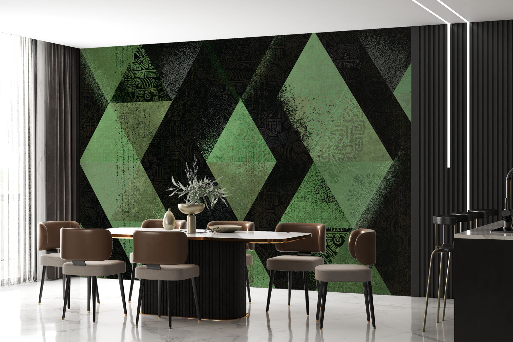 Proměňte obyčejnou stěnu v místo, kde se bude konverzovat, pomocí této černozelené fototapety s kosočtvercovým vzorem. Má chladnou, uměleckou atmosféru, která vzbuzuje zvědavost – ideální pro ty, kteří milují moderní dekorace! Představte si, že vstoupíte do svého pokoje a pocítíte nečekaný příval energie z těchto odvážných tvarů. Každý diamant jako by vyprávěl svůj příběh, mísí se v něm textury, jako by prožil barevné dobrodružství. Ať už se nachází v živém obývacím pokoji nebo v klidném čtecím koutku, tato nástěnná malba má sílu dodat každému prostoru pocit svěžesti a přívětivosti. Pusťte se do toho a nechte tyto stěny mluvit!
