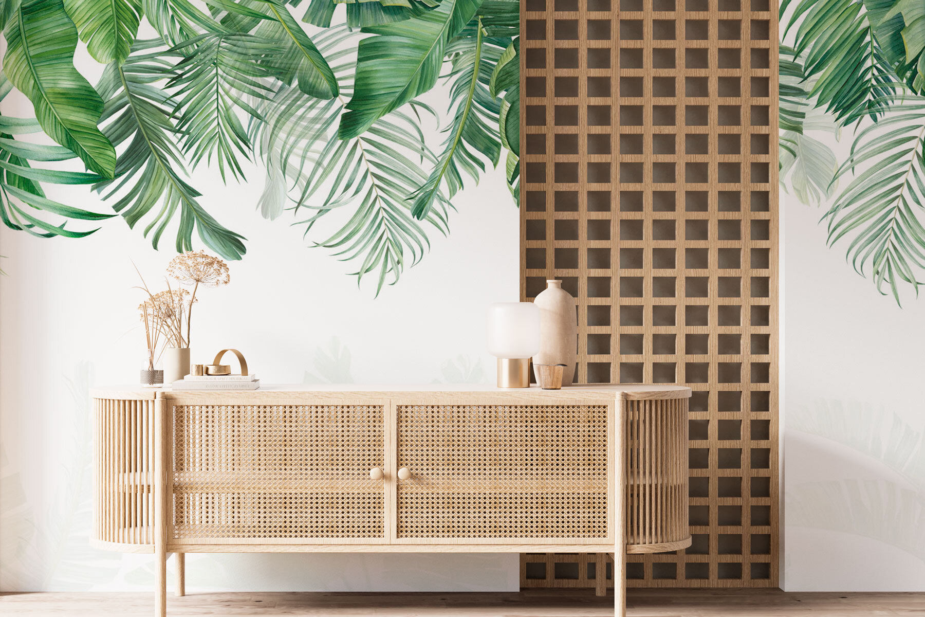 Je to jako pozvat přírodu dovnitř bez otravného hmyzu. Navíc tato nástěnná malba skryje všechny ty malé nedokonalosti na vašich stěnách – sbohem, nudná béžová! Ať vám každý pohled na tyto zářivé listy připomene letní dobrodružství. Ať už se jedná o obývací pokoj, ložnici nebo domácí kancelář, tato nástěnná malba přináší nádech zábavy a vkusu. Kdo by nechtěl, aby jeho prostor působil takto hřejivě a přívětivě?