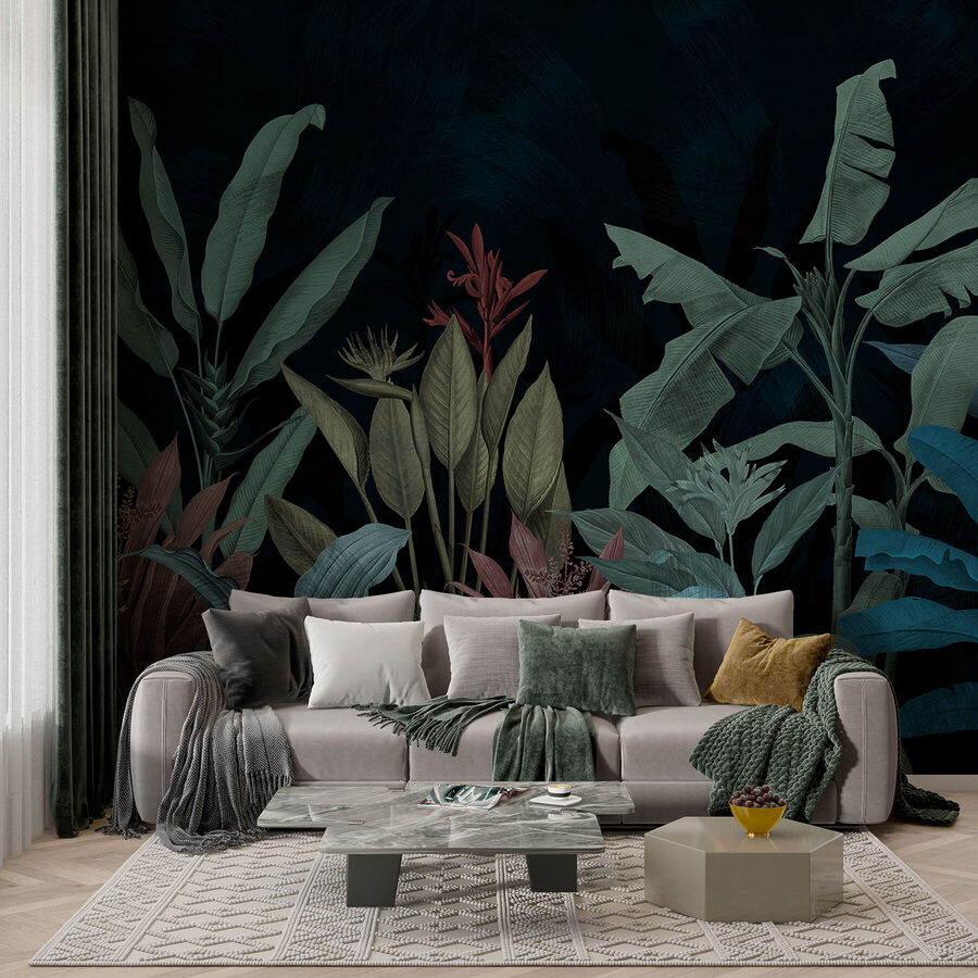 Představte si, že vejdete do místnosti a máte pocit, že jste vstoupili do kouzelné noční džungle. Přesně to nabízí “Noční serenáda v zelené a modré”. Tato nástěnná malba není jen obkladem stěny – je to nálada. Sytá zelená a modrá spolu hrají jako ztichlá noční symfonie, ideální pro místo, kde můžete odpočívat. Představte si to: máte za sebou dlouhý den a chcete si odpočinout. Tyto svěží listy vás sevřou v náručí a šeptají vám příběhy o vzdálených tropech. Je to jako daleké dobrodružství bez zpoždění.