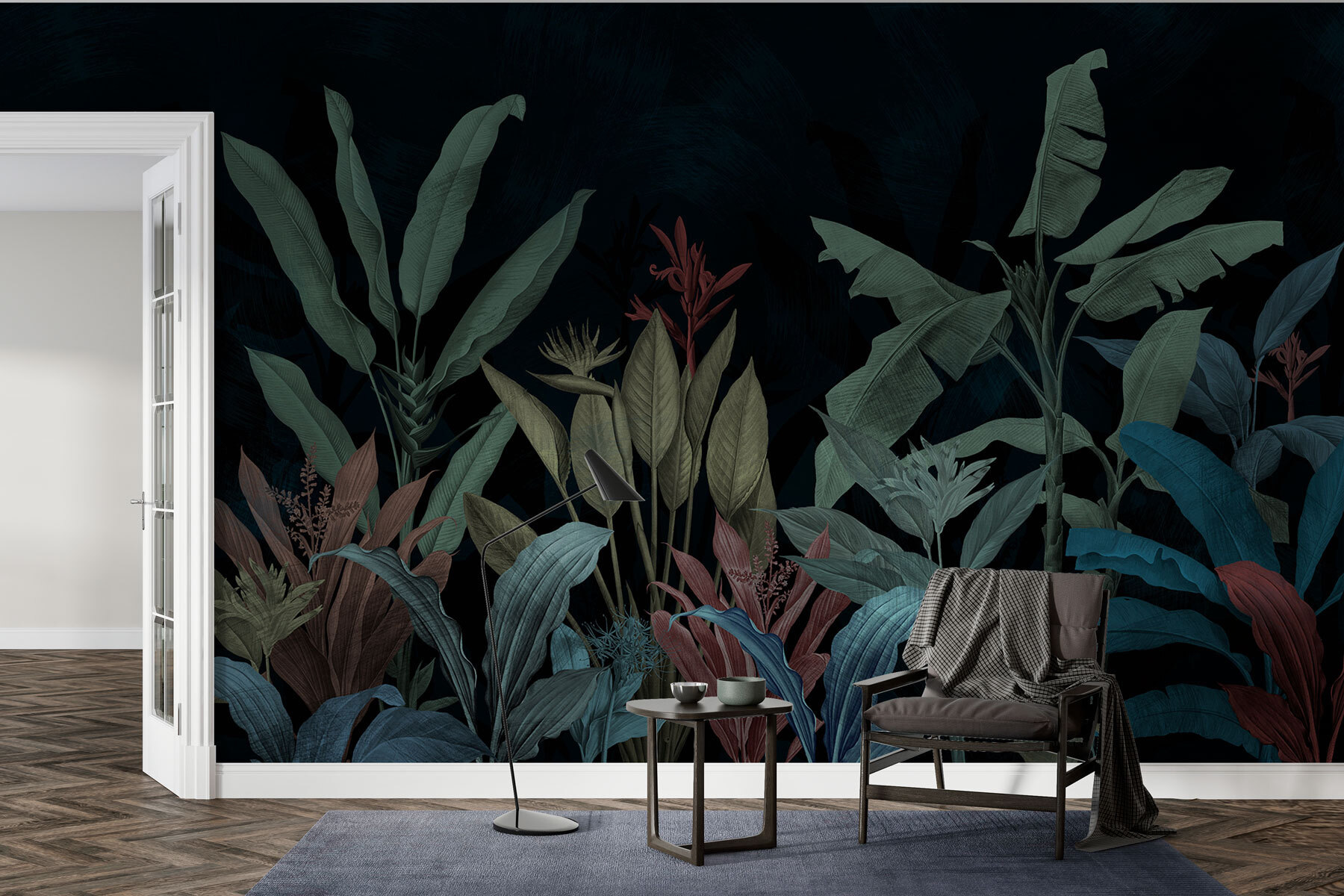 Představte si, že vejdete do místnosti a máte pocit, že jste vstoupili do kouzelné noční džungle. Přesně to nabízí “Noční serenáda v zelené a modré”. Tato nástěnná malba není jen obkladem stěny – je to nálada. Sytá zelená a modrá spolu hrají jako ztichlá noční symfonie, ideální pro místo, kde můžete odpočívat. Představte si to: máte za sebou dlouhý den a chcete si odpočinout. Tyto svěží listy vás sevřou v náručí a šeptají vám příběhy o vzdálených tropech. Je to jako daleké dobrodružství bez zpoždění.