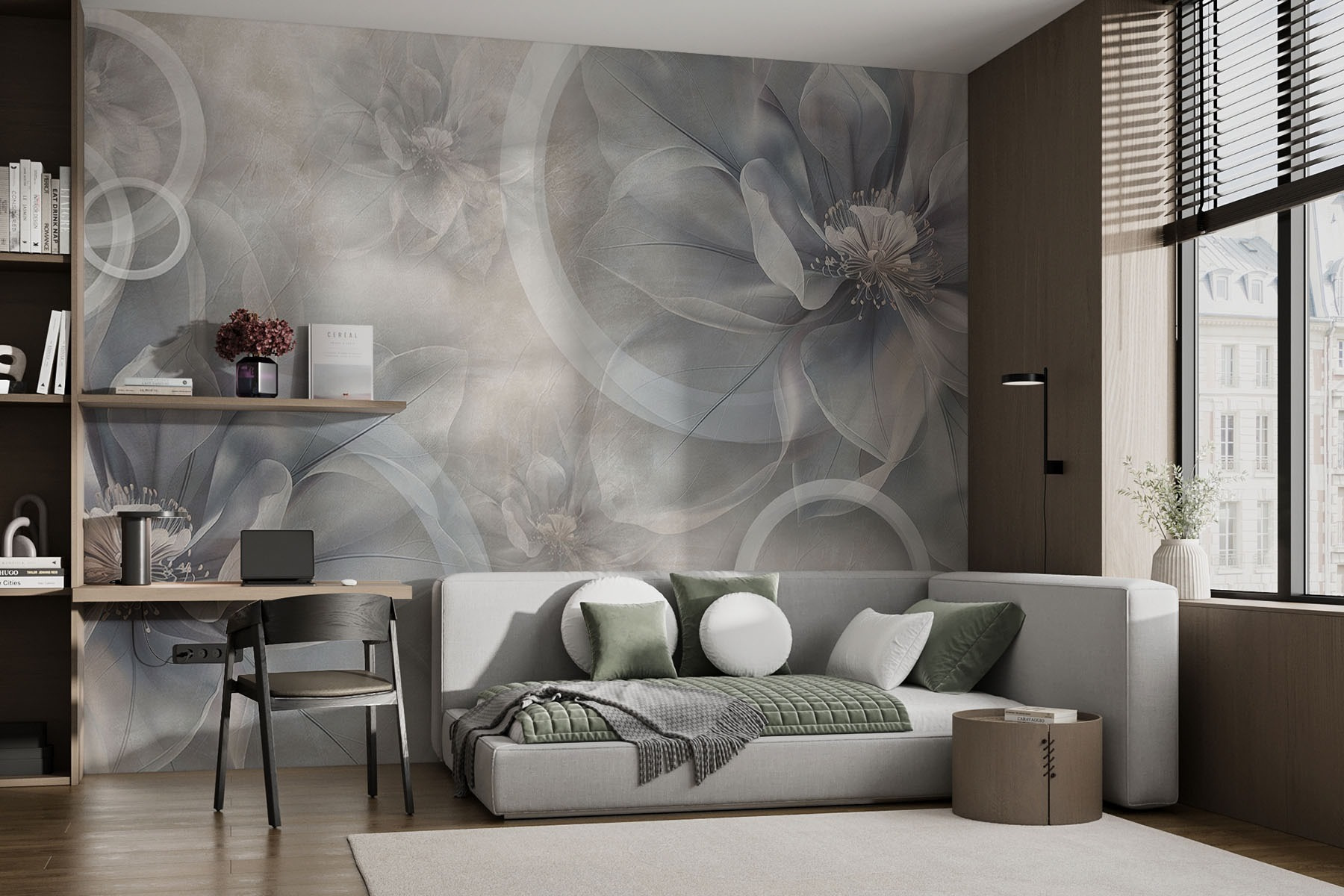 Proměňte každou místnost v oázu klidu pomocí nástěnné malby “Jemné květy v jemných odstínech”. Představte si, že vstoupíte do svého prostoru a přivítají vás jemné, akvarelové květy, které našeptávají eleganci a klid. Tyto půvabné květy se lehce vznášejí na tlumeném pozadí, téměř jako by tančily v jemném vánku.