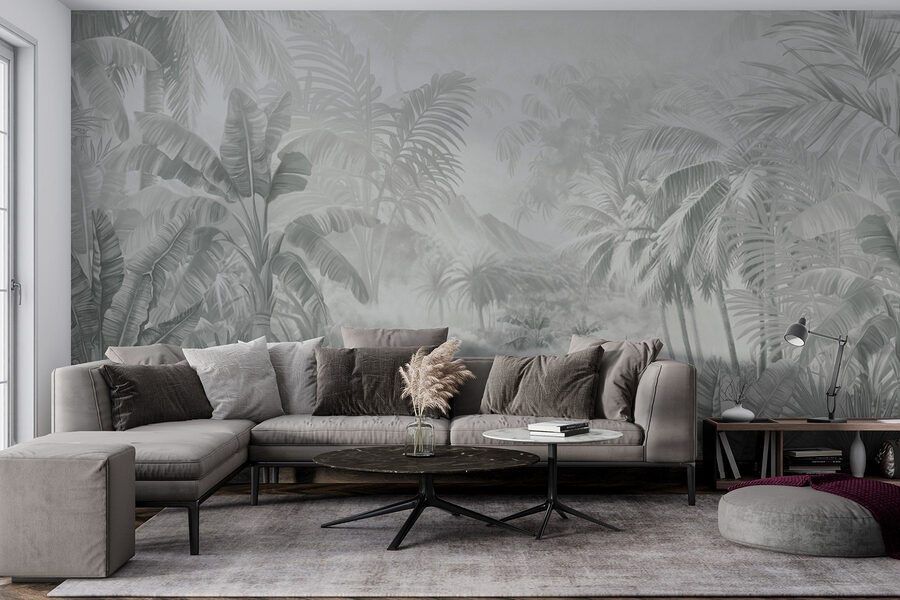 Proměňte své stěny v klidné útočiště díky této úžasné nástěnné malbě v šedé škále s tropickým pralesem. Představte si, že popíjíte ranní kávu a přitom se díváte na svěží zeleň, která jako by vám šeptala tajemství džungle. Měkké, tlumené tóny dodávají klidnou atmosféru – ideální pro ty, kteří dávají přednost dekoru s nádechem tajemna. Představte si tuto krásku za útulným čtecím koutkem nebo jako pozadí pro váš příští Zoom hovor, který vyvolá hlavní atmosféru “jsem na tropickém útěku”, i když jste právě doma. Je to jako přenést si kousek ráje do interiéru bez spálení od slunce. To je výhra pro všechny!