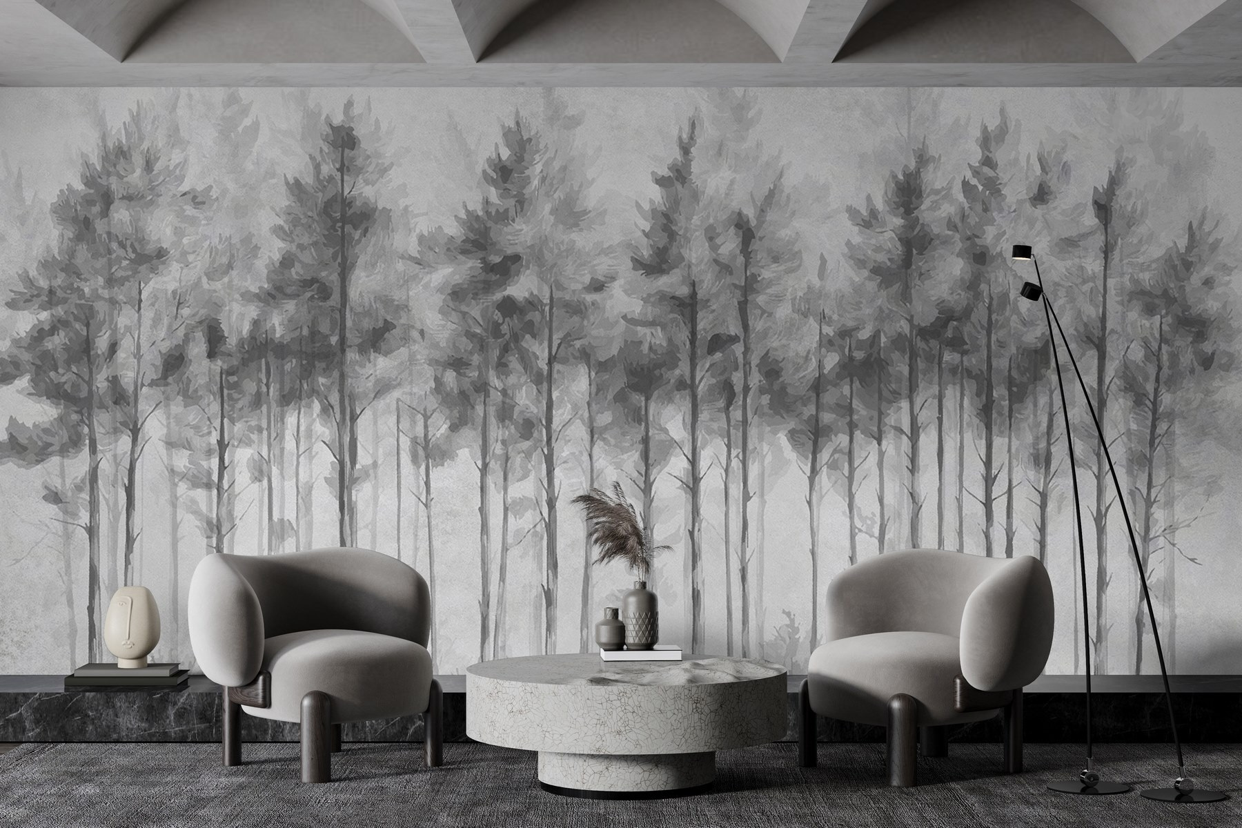 Představte si, že při každém vstupu do pokoje vstoupíte do klidného lesa. Tato nástěnná malba “Skupina stromů v lese” zachycuje tuto snovou atmosféru a mísí jemnou paletu šedé s elegantními siluetami stromů. Je to jako jemný šepot přírody, který vybízí ke klidu a pohodě. Je ideální do obývacího pokoje nebo čtecího koutku a možná vás inspiruje k tomu, abyste se schoulili do klubíčka s dobrou knihou – nebo třeba naplánovali pěší výlet, o kterém jste snili. Navíc, kdo by nechtěl nástěnnou malbu, díky které se bude cítit jako na klidném útěku? Milovníci přírody se radují – tahle je jako stvořená!