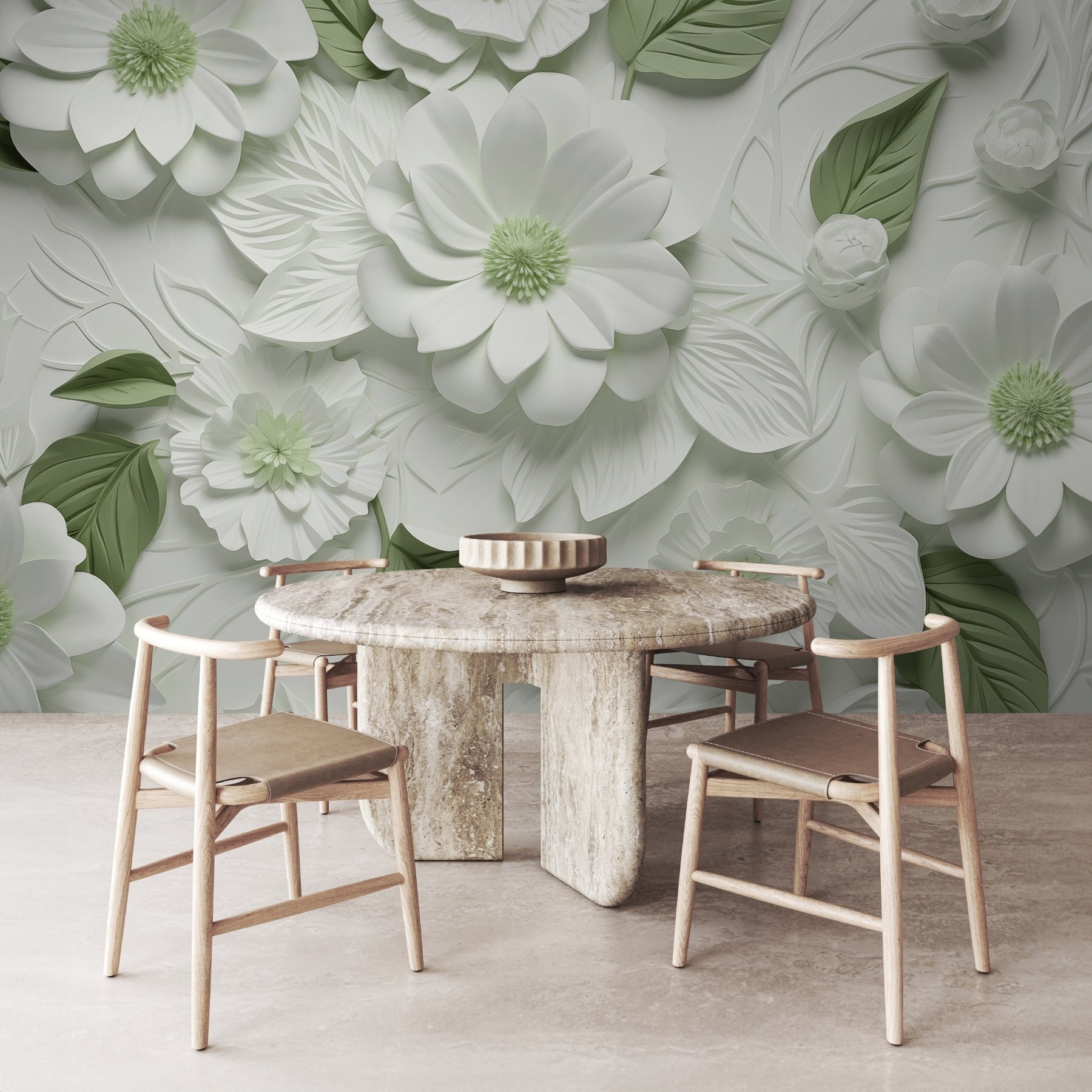S touto úžasnou fototapetou s jemnými bílými a zelenými květy proměníte každou místnost v oázu klidu. Je to jako přenést zahradu dovnitř, bez otravných brouků. Představte si, že popíjíte kávu ve sluncem ozářeném koutě obklopeni květy, které nikdy neuvadnou. Ve složitých vzorech se mísí elegance s nádechem rozmarnosti, takže každý pohled bude působit jako mini útěk. Ideální na prázdnou stěnu, která si říká o trochu lásky, nebo i jako akcent, který vše ozvláštní. Krása přírody u vás doma, a to bez potřeby zeleného palce – kdo by to nechtěl?
