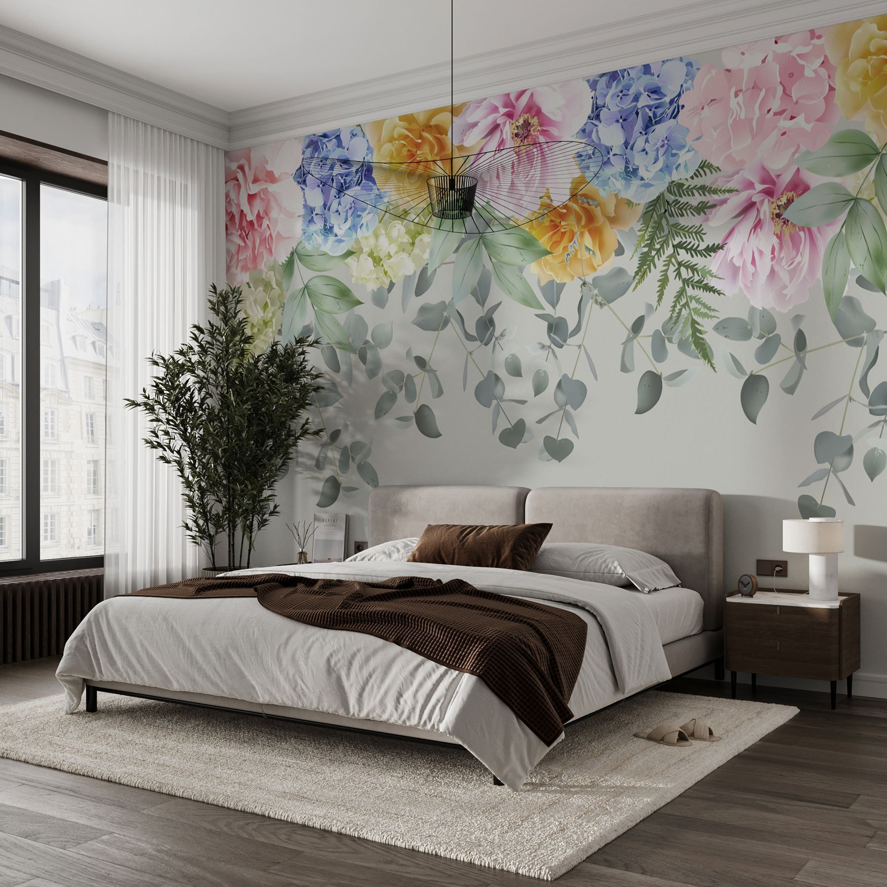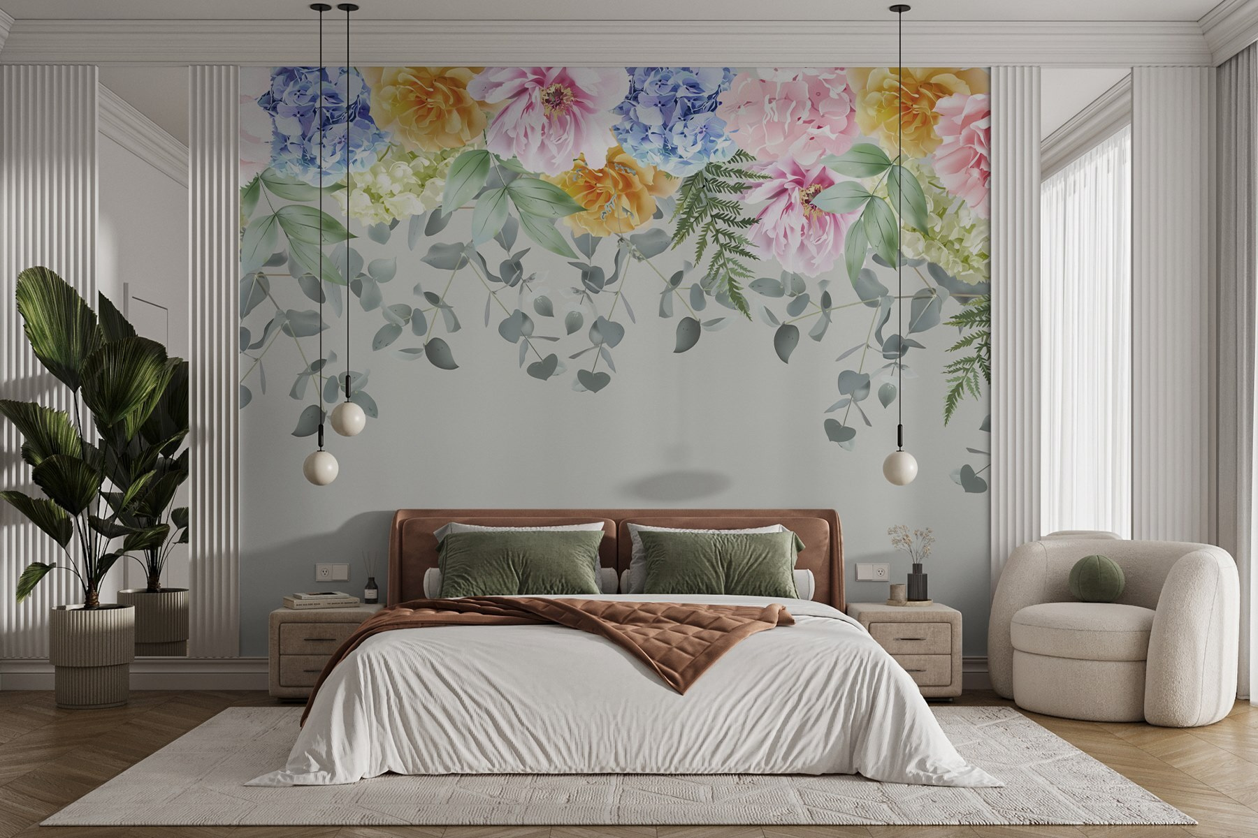 Proměňte každou místnost v květinový ráj s touto úžasnou nástěnnou malbou s živou skupinou květin a listů. Představte si, že vejdete do svého prostoru a přivítají vás rozkvetlé pivoňky a jemné hortenzie, skoro jako by se příroda právě rozhodla usadit na vaší zdi! Je ideální pro přidání nádechu tepla a veselí a skvěle se hodí k zahájení konverzace – taková nástěnná malba, která lidi donutí zastavit se a usmát se: “Páni, to je tak hezké!”. Navíc, kdo by neměl rád trochu radosti inspirované přírodou přímo u sebe doma? Ať už je to v obývacím pokoji nebo v útulném koutku, tato nástěnná malba přináší život a barvy a mění šedivou atmosféru v báječnou. Jen si představte, jak se v tomto prostoru schoulíte obklopeni těmito nádhernými květy – ach, blaho!