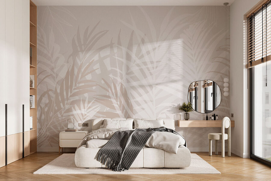 Přineste si domů dotek tropů s touto úžasnou fototapetou s elegantními bílými a hnědými listy. Představte si, že vejdete do místnosti, kde se cítíte být obklopeni vnějším prostředím – je to jako jemný šepot přírody pokaždé, když vstoupíte dovnitř. Tato fototapeta dodává atmosféru, která je uklidňující a zároveň trochu dobrodružná, ideální do obývacích prostor nebo útulných čtecích koutků.