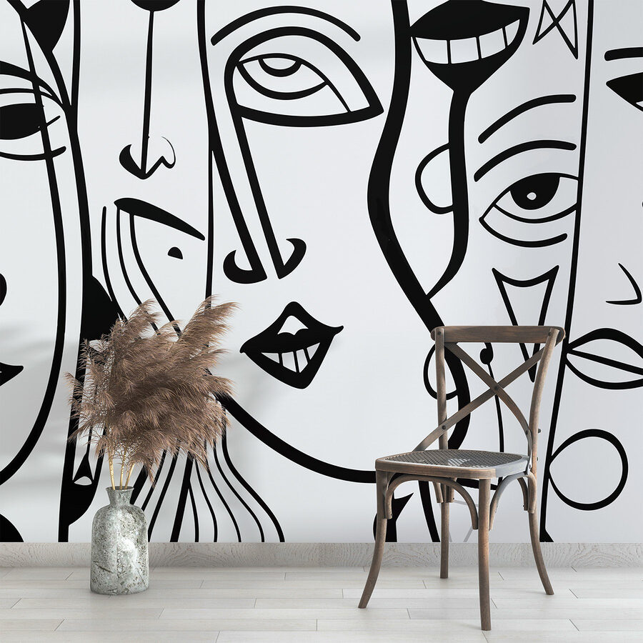 Proměňte svůj prostor pomocí této podmanivé černobílé nástěnné malby se směsicí výrazných tváří. Je to jako mít uměleckou galerii přímo ve svém obývacím pokoji, ale bez okázalé atmosféry. Odvážné linie a hravé tvary vybízejí ke konverzaci – jen si představte, že se přátelé zastaví uprostřed věty, aby ji obdivovali, a zároveň se snaží rozluštit emoce zamrzlé v těchto svérázných výrazech.