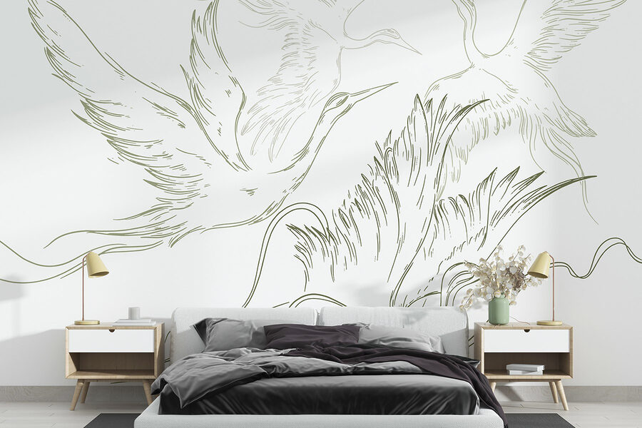 Proměňte svůj prostor v klidné útočiště díky této nástěnné malbě s elegantními ptáky vznášejícími se po obloze. Jemné akvarelové tahy vytvářejí uklidňující atmosféru a vnášejí do každé místnosti pocit svobody a klidu. Představte si to – útulný čtecí koutek zdobený těmito půvabnými tvory, díky nimž se každý doušek čaje bude zdát jako mini dovolená. Jemné barvy snadno splynou s vaším interiérem a přenesou přírodu do interiéru bez nepříjemného uklízení. Je to jako umělecké snění, které neuletí. Ideální pro ty, kteří ve svém obytném prostoru ocení nádech rozmarnosti!