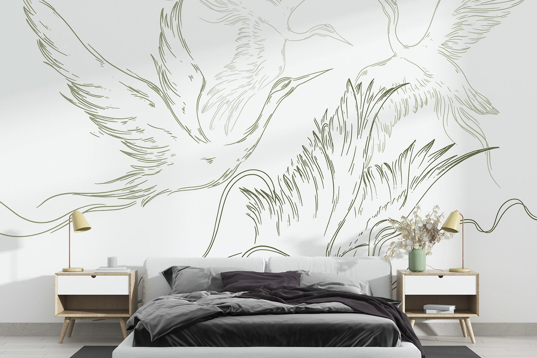 Proměňte svůj prostor v klidné útočiště díky této nástěnné malbě s elegantními ptáky vznášejícími se po obloze. Jemné akvarelové tahy vytvářejí uklidňující atmosféru a vnášejí do každé místnosti pocit svobody a klidu. Představte si to – útulný čtecí koutek zdobený těmito půvabnými tvory, díky nimž se každý doušek čaje bude zdát jako mini dovolená. Jemné barvy snadno splynou s vaším interiérem a přenesou přírodu do interiéru bez nepříjemného uklízení. Je to jako umělecké snění, které neuletí. Ideální pro ty, kteří ve svém obytném prostoru ocení nádech rozmarnosti!
