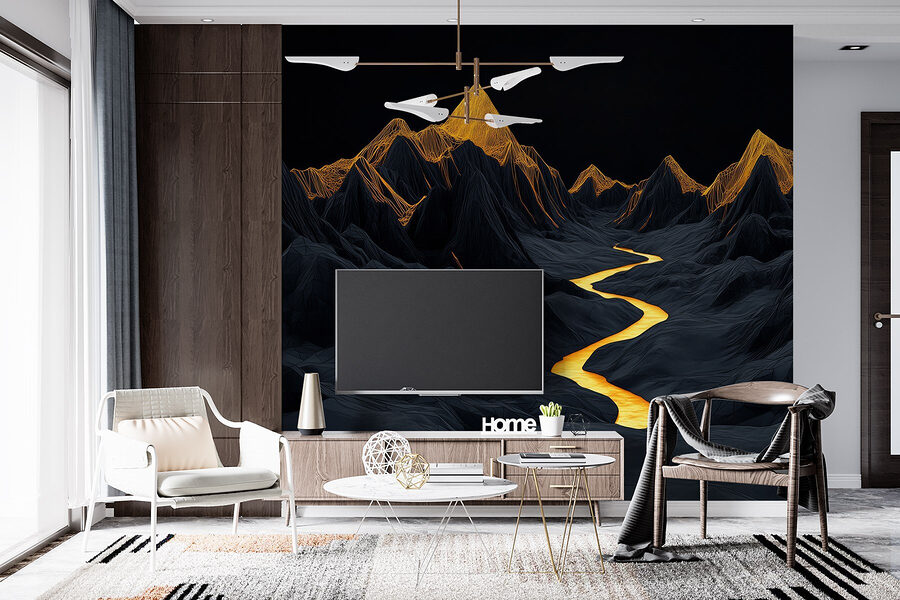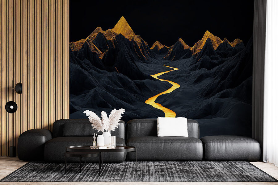 Proměňte jakýkoli prostor v klidné útočiště pomocí této úžasné nástěnné malby zobrazující řeku vinoucí se majestátními horami. Představte si, že popíjíte teplý nápoj a přitom se díváte na zlatavou řeku třpytící se na pozadí temných, dramatických vrcholů – je to jako přenést si přírodu přímo do obývacího pokoje. Ideální pro každého, kdo sní o dobrodružství nebo jen potřebuje klidný koutek k odpočinku. Ať už se stane ústředním bodem místnosti, nebo decentním pozadím každodenního života, tato nástěnná malba dodá šmrnc divoké přírodě, aniž by k tomu byla potřeba jakákoli turistická výbava. Jen si to představte: útulné večery, měkké světlo a ten nádherný výhled každý den.