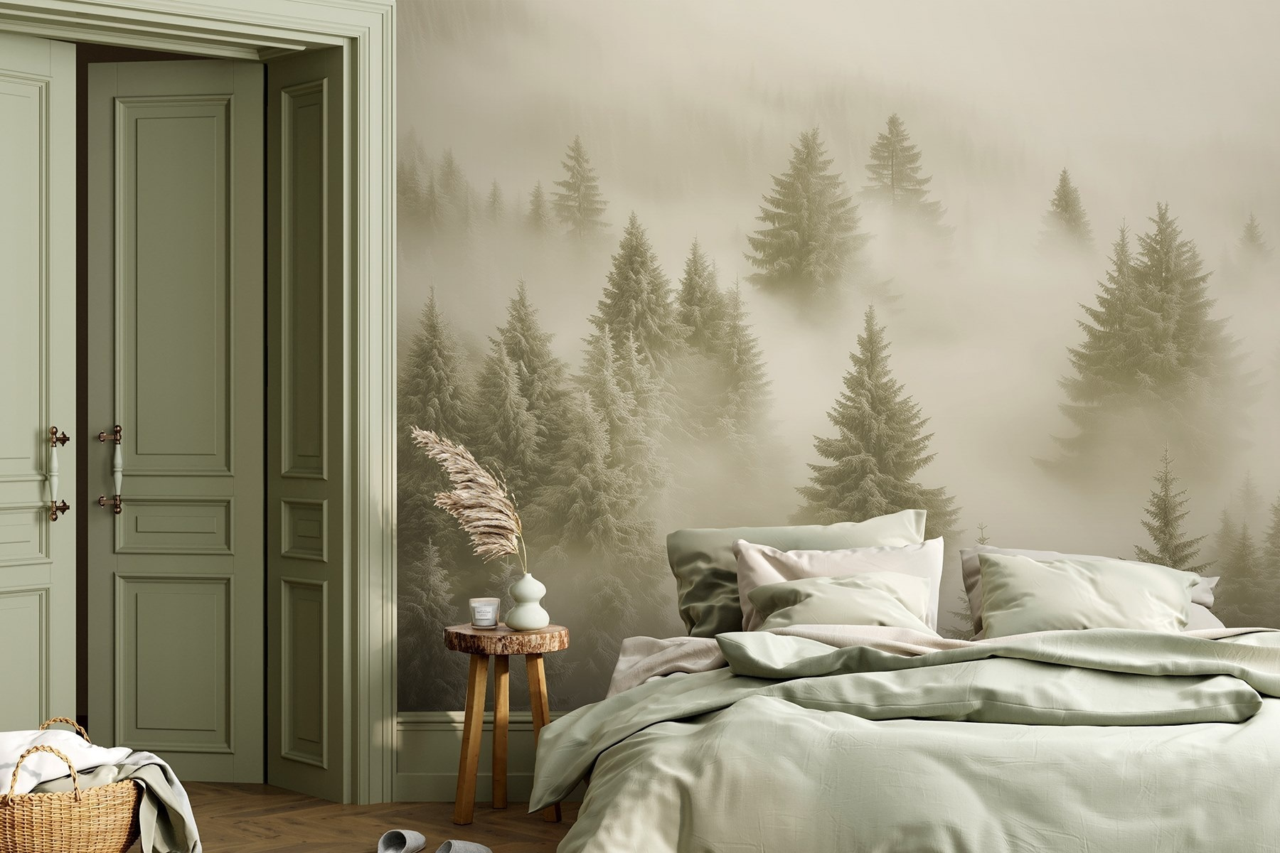 Představte si, že vstoupíte do klidného lesa, kde vysoké stromy jsou zahaleny do jemného oparu. Tato nástěnná malba “Skupina stromů v mlze” dokonale vystihuje tuto klidnou atmosféru. Je to jako přenést si kus přírody do interiéru, aniž byste museli cokoli zalévat – super nenáročná údržba!
