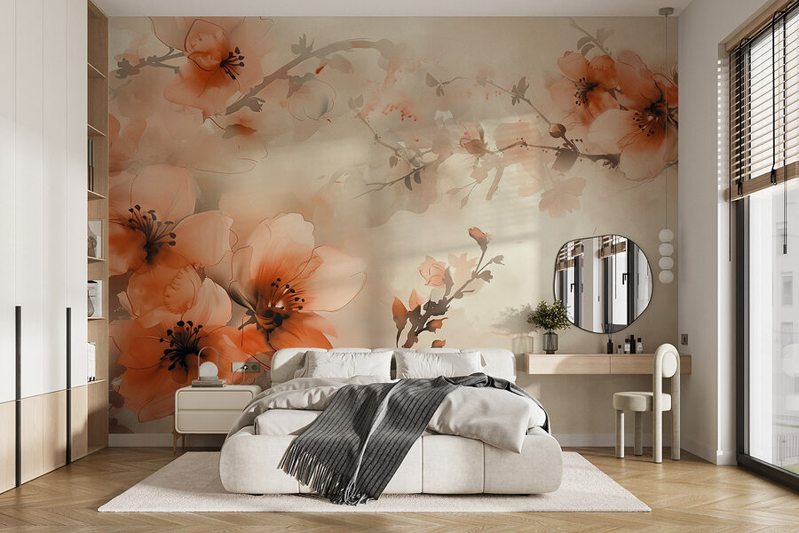 Proměňte jakýkoli prostor v klidné útočiště s “Květy tančícími v jemných odstínech”. Tato okouzlující nástěnná malba zachycuje jemné pohupování květů na zasněném pozadí. Představte si lenošení se šálkem čaje, kdy vám tyto teplé broskvové okvětní lístky jemně šeptají příběhy z klidné japonské zahrady. Akvarelové nádechy a jemné linie vytvářejí uklidňující atmosféru, takže je ideální pro útulná zákoutí nebo živá setkání. Je to jako přenést si kousek přírody do interiéru – není k tomu potřeba žádný zelený palec! Nechte své stěny vyprávět příběh a vneste do každodenního života kapku radosti.