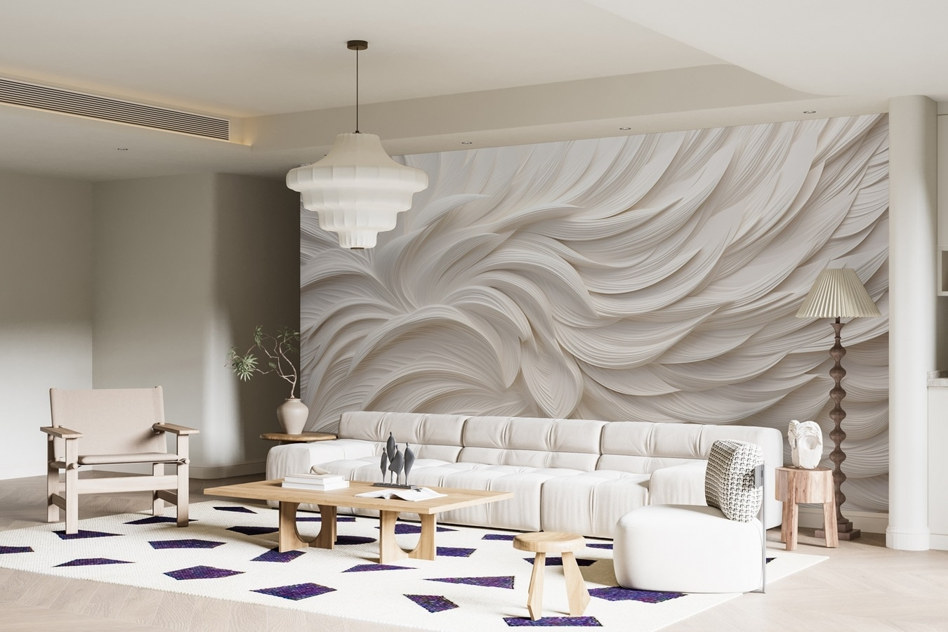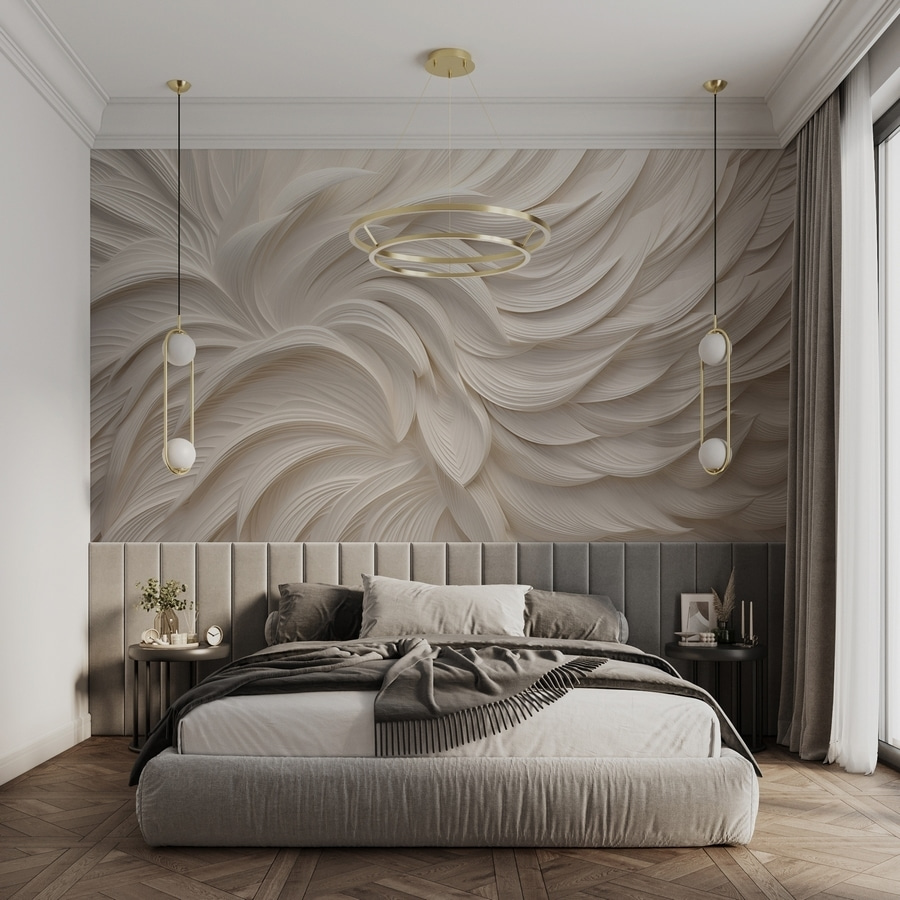 Proměňte svůj prostor pomocí této zasněné nástěnné malby, která působí jako jemné objetí. Představte si bílé plátno, kde jemné, splývavé tvary vytvářejí klidnou atmosféru jako peříčka jemně unášená větrem. Není to jen kulisa, je to zážitek. Představte si, že se každé ráno probudíte s tímto uklidňujícím pohledem nebo se schoulíte na gauči a budete se cítit “zenově” jen při pohledu na něj. Je také všestranný, skvěle se hodí do útulného obývacího pokoje, elegantní kanceláře nebo třeba do čtecího koutku, který potřebuje trochu lásky. Přidejte na své stěny nádech rozmarnosti a klidu a sledujte, jak se kouzlo rozvine.