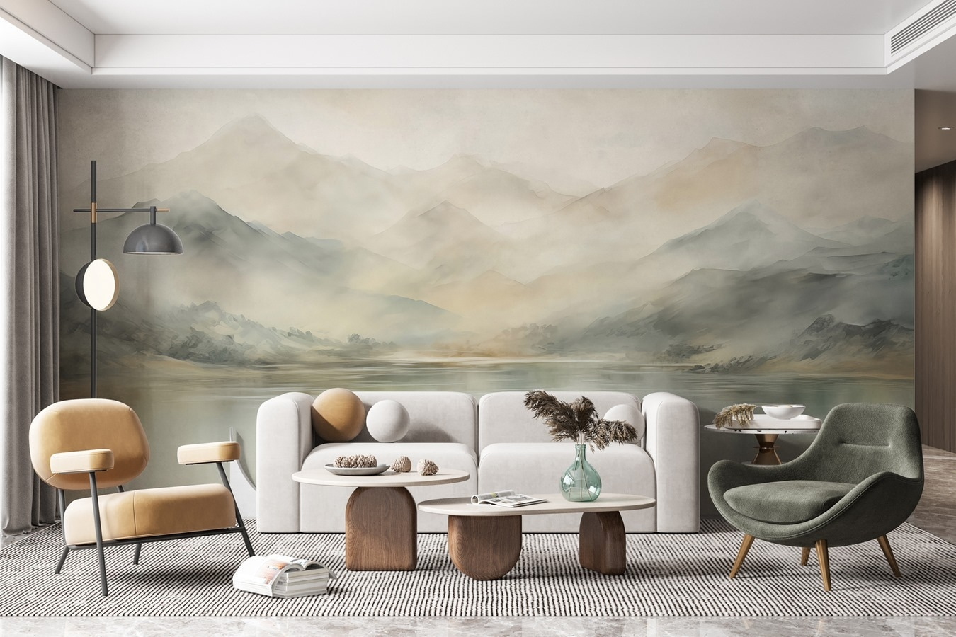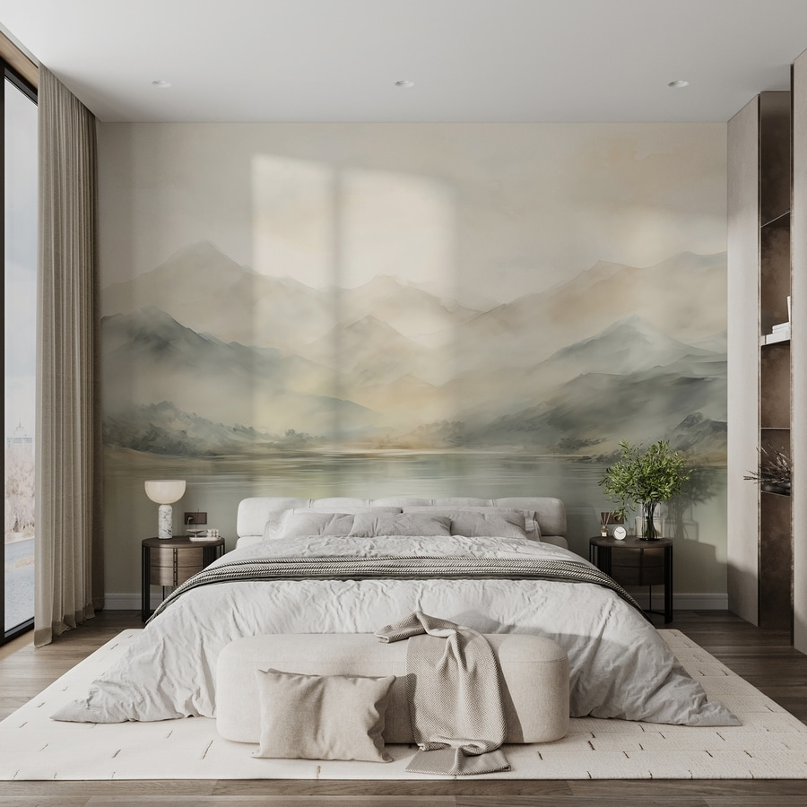 Proměňte jakoukoli stěnu v klidné útočiště pomocí této úžasné nástěnné malby vody a vzdálených hor. Představte si, že se díváte na jemné odstíny, které se prolínají a vytvářejí klidnou, téměř snovou scénu. Je to jako miniaturní dovolená přímo ve vašem obývacím pokoji. Ideální pro zónování po dlouhém dni nebo pro nastartování snění o turistických dobrodružstvích. Jemné tahy navozují pocity klidu – ideální pro útulný čtecí koutek nebo dokonce pro živé prostředí při večeři. Představte si, jak konverzace plynou, zatímco tato krása vytváří dokonalé pozadí. Není to jen dekorace, je to pozvánka k odpočinku.
