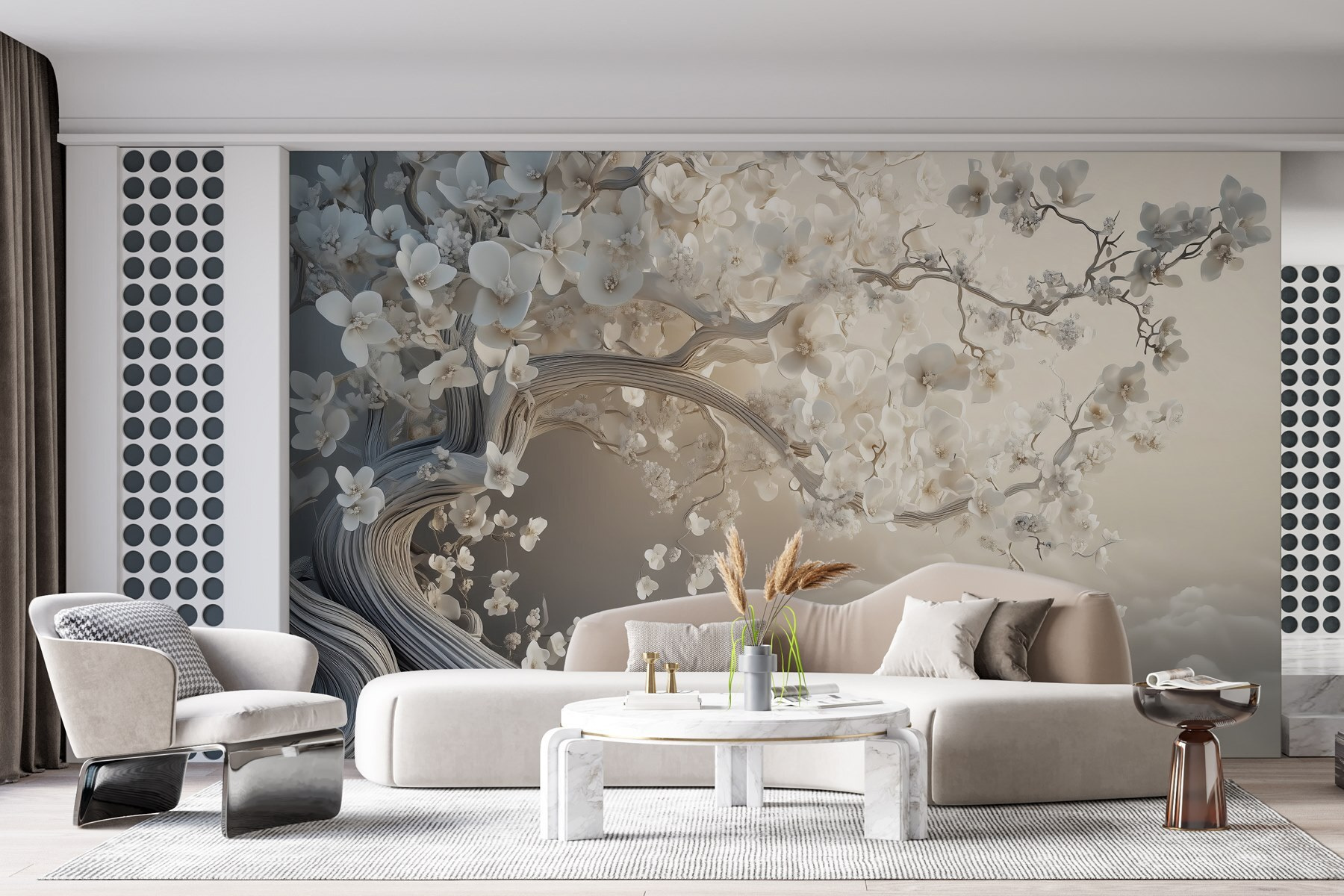 Proměňte jakýkoli prostor pomocí úžasné nástěnné malby “Bílý strom s bílými květy”. Představte si, že vstoupíte do klidné japonské zahrady, kde se usadí klidná atmosféra jako šálek teplého čaje za sychravého rána. Složitý design této nástěnné malby zve do interiéru jemný šepot přírody a spojuje krásu s klidem. Půvabné větve se jemně klenou a zdobí je jemné květy, které jako by tančily ve větru. Ideální do obývacích pokojů nebo útulných zákoutí, je to jako mít zasněný únik přímo na zdi. Stačí se zamyslet – každý pohled může do vašeho dne vnést trochu zenu. Přidejte tento dotek přírody a sledujte, jak se z obyčejného prostředí stane rozmarná říše divů.