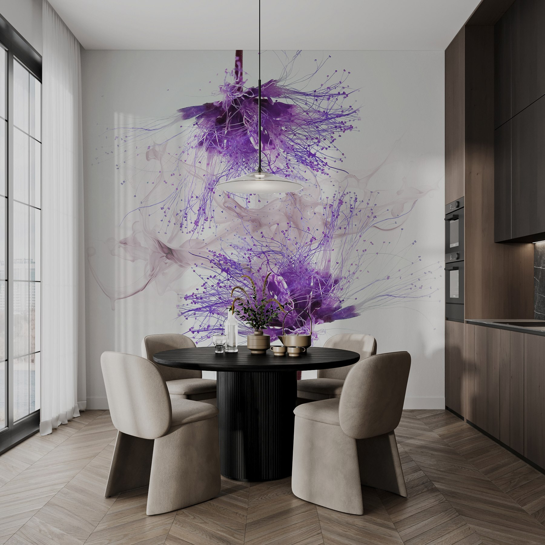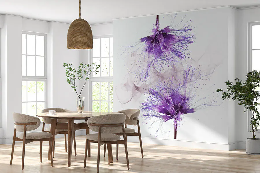 Proměňte jakýkoli prostor ve snovou zahradu s nástěnnou malbou “Fialové květiny s fialovými cákanci”. Představte si procházku po levandulovém poli, kde každý pohled na tuto fototapetu vyvolá úsměv. Její zářivé odstíny a hravé cákance vytvářejí pocit radosti – ideální pro dny, kdy život potřebuje trochu povzbudit. Představte si ji v útulném čtecím koutku nebo v živé kuchyni, kde vyvolá konverzaci a zahřeje. Každý tah štětcem jako by šeptal tajemství přírody, díky čemuž se budete cítit propojení a v klidu. Mluvte o okamžitém klidu! Je to jako přenést krásu přírody přímo dovnitř – kdo by to nemiloval?