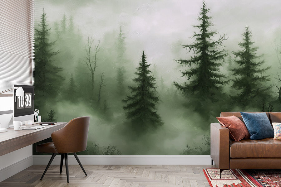 S nástěnnou malbou “Mlžný les se stromy” se ocitnete v pohádkovém světě. Představte si, že popíjíte ranní kávu obklopeni klidným mlžným lesem, kde ty vysoké stromy jako by šeptaly svá tajemství. Tento design přináší kousek přírody přímo do vašeho domova – ideální pro vytvoření útulného zákoutí nebo klidného útočiště. Tlumená zeleň a měkké textury vybízejí ke klidným vibracím, téměř jako objetí od matky přírody. Navíc nepotřebujete turistické boty ani sprej proti hmyzu! Jen se pohodlně usaďte, relaxujte a nechte své stěny mluvit.