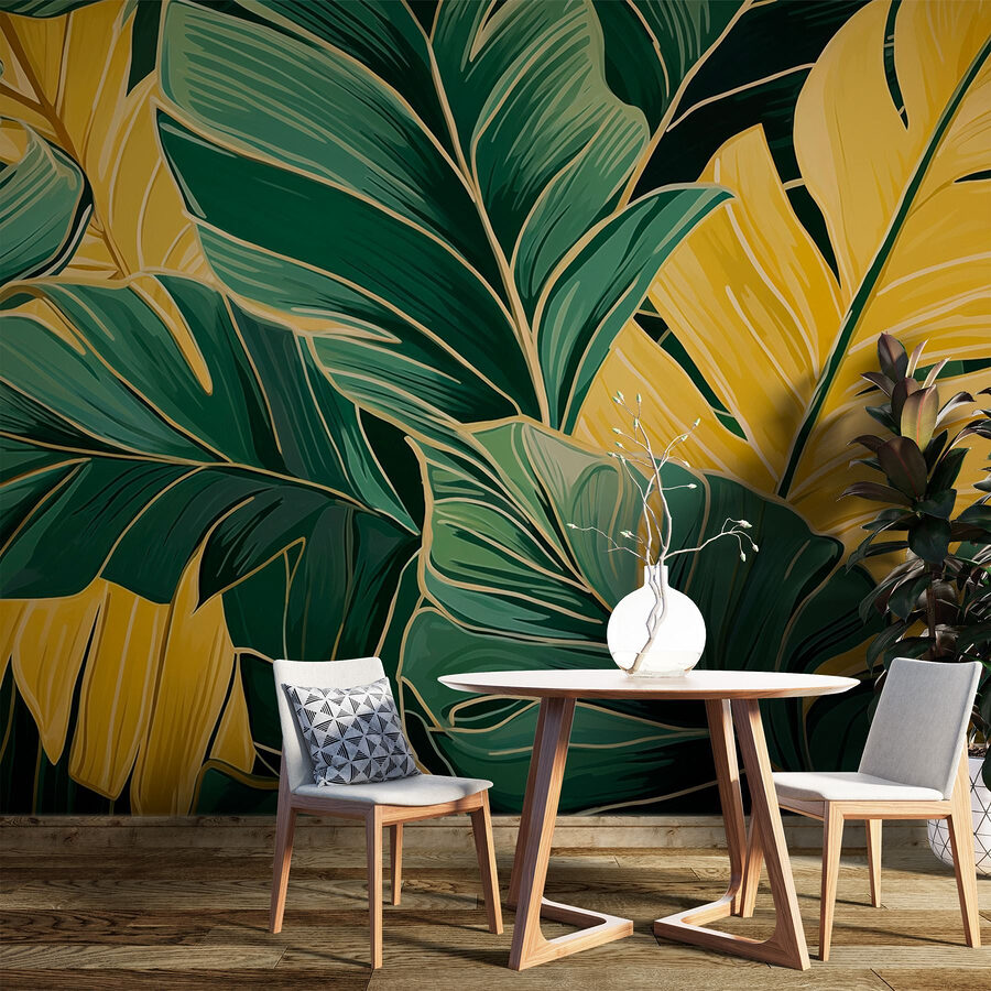 Přeneste se do přírody s touto úžasnou nástěnnou malbou “Živé listí ve žluté a zelené barvě”. Představte si, že se každý den probouzíte do tropické oázy přímo ve svém obývacím pokoji. Tyto výrazné žluté a svěží zelené listy vynikají, jako by je právě políbilo slunce. Je to jako mini dovolená na vaší zdi! Přátelé se budou divit, že máte vzadu schovanou tajnou zahradu.