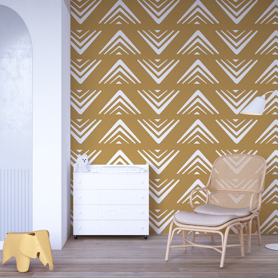 Proměňte jakýkoli prostor pomocí této živé nástěnné malby s hravým vzorem trojúhelníků tančících na slunném žlutém pozadí. Je to jako výbuch radosti na stěnách, který okamžitě rozzáří náladu. Představte si, že popíjíte kávu v místnosti, která působí živě a plná energie – to je způsob, jak začít den! Navíc tyto čisté linie a geometrické tvary dodávají moderní nádech, takže se skvěle hodí jak do útulných zákoutí, tak do elegantních obývacích prostor. Je to ten typ nástěnné malby, která vyvolá konverzaci, vykouzlí úsměv na tváři hostů a možná i inspiruje k improvizovaným tanečním pohybům. To je přece zábava, ne?