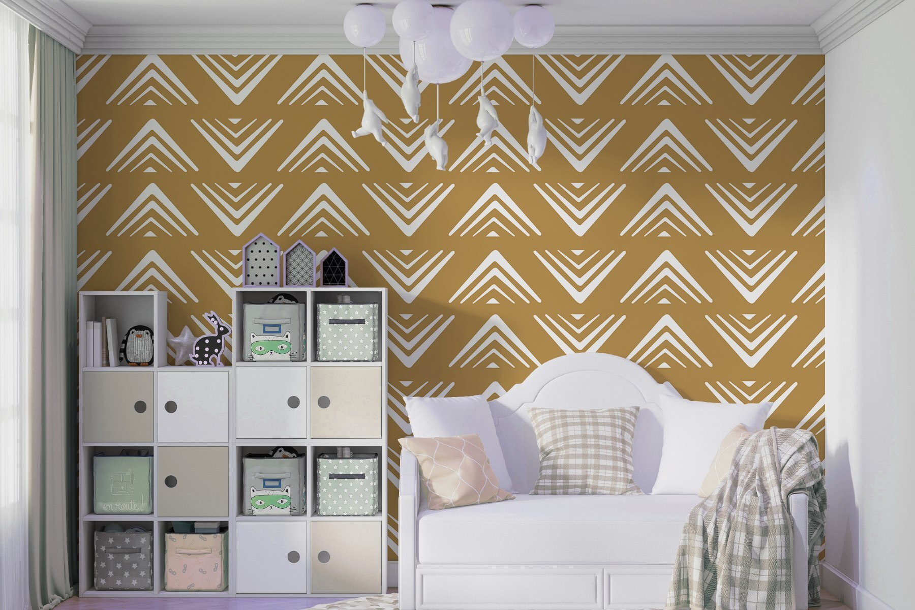 Proměňte jakýkoli prostor pomocí této živé nástěnné malby s hravým vzorem trojúhelníků tančících na slunném žlutém pozadí. Je to jako výbuch radosti na stěnách, který okamžitě rozzáří náladu. Představte si, že popíjíte kávu v místnosti, která působí živě a plná energie – to je způsob, jak začít den! Navíc tyto čisté linie a geometrické tvary dodávají moderní nádech, takže se skvěle hodí jak do útulných zákoutí, tak do elegantních obývacích prostor. Je to ten typ nástěnné malby, která vyvolá konverzaci, vykouzlí úsměv na tváři hostů a možná i inspiruje k improvizovaným tanečním pohybům. To je přece zábava, ne?