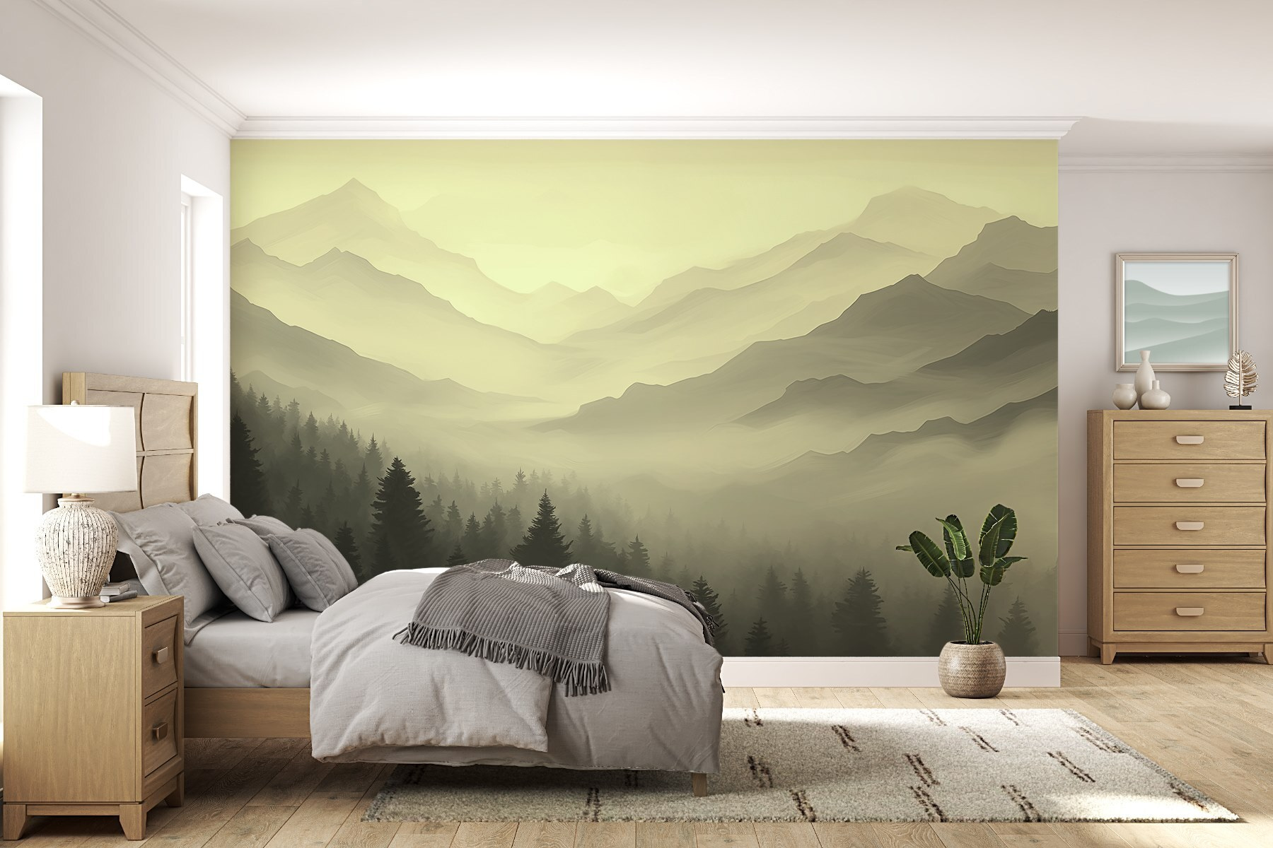 Proměňte jakoukoli stěnu v klidné útočiště s touto úžasnou fototapetou mlhavé horské krajiny. Představte si, že popíjíte kávu obklopeni vysokými borovicemi a mírnými horskými hřebeny, zatímco vás obklopuje uklidňující mlha – zní to nádherně, že? Tato nástěnná malba, která je ideální pro vytvoření útulného zákoutí nebo zasněného pozadí v ložnici, našeptává klid a pohodu. Ať už jste milovníci hor, nebo jen potřebujete do svého života trochu přírody, nabízí každodenní připomínku skvělé přírody – bez turistických bot! Navíc, kdo by se nechtěl cítit, jako by žil uvnitř pohlednice?