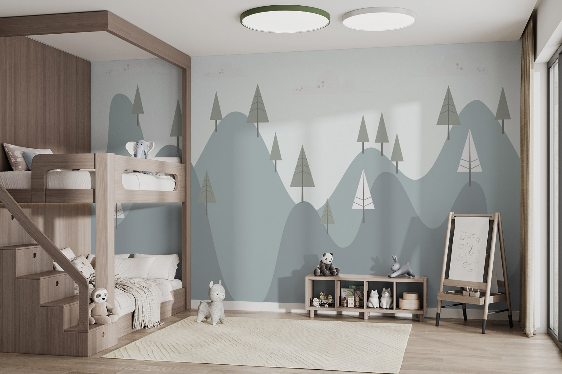 Proměňte svůj prostor v klidné útočiště s touto okouzlující nástěnnou malbou hor! Představte si to – šumivé vrstvy jemné zeleně a modři, klidné stromy stojící na stráži a pocit klidu, který našeptává: “Pojďme trochu zpomalit.” Jemná, umělecká atmosféra této nástěnné malby je ideální pro útulný čtecí koutek nebo klidné útočiště v ložnici. Je to jako mít miniaturní dovolenou přímo na zdi. Představte si, že se schoulíte do klubíčka s dobrou knihou, šálkem bylinkového čaje a necháte se unášet pohledem přes ty lákavé vrcholky – ach, blaho! Kdo potřebuje letenku, když může denně snít o přírodě?