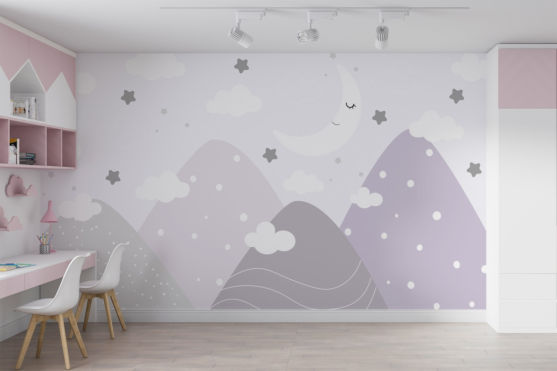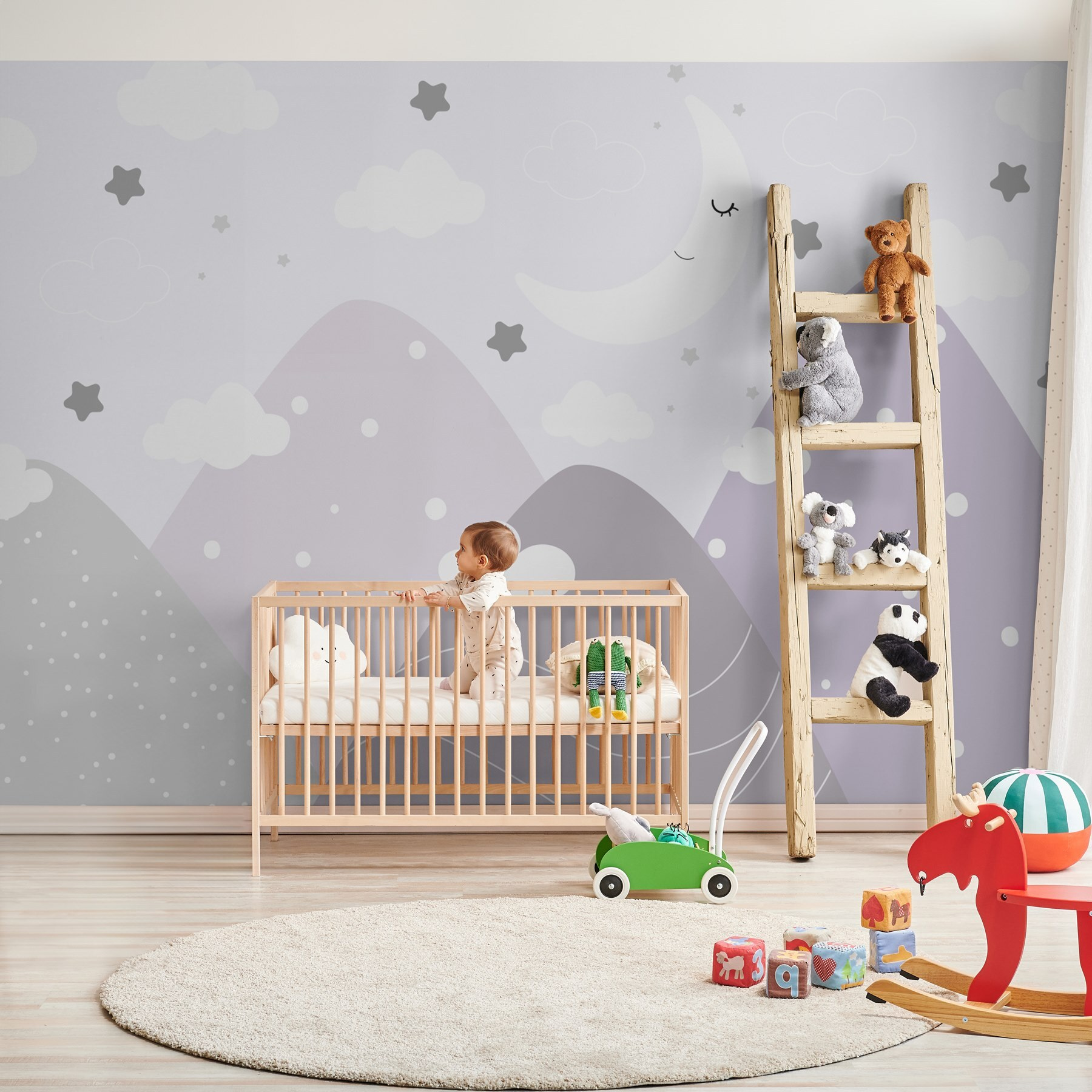 Proměňte jakýkoli prostor pomocí této zasněné nástěnné malby s měsícem a mraky na obloze. Je ideální pro nejmenší a vytváří rozmarnou atmosféru, která je útulná a zároveň hravá. Představte si dětský pokoj, kde se čas spánku stane dobrodružstvím, obklopený něžnými horami a třpytivými hvězdami. Jemné barvy uklidňují a zároveň podněcují představivost – ideální pro snílky i hvězdáře. Ať už je čas na vyprávění nebo na spaní, tato nástěnná malba zahalí pokoj do klidných vibrací, díky nimž se každý okamžik bude cítit útulně a výjimečně. Nedivte se, když se celá rodina začne těšit na čas spánku!