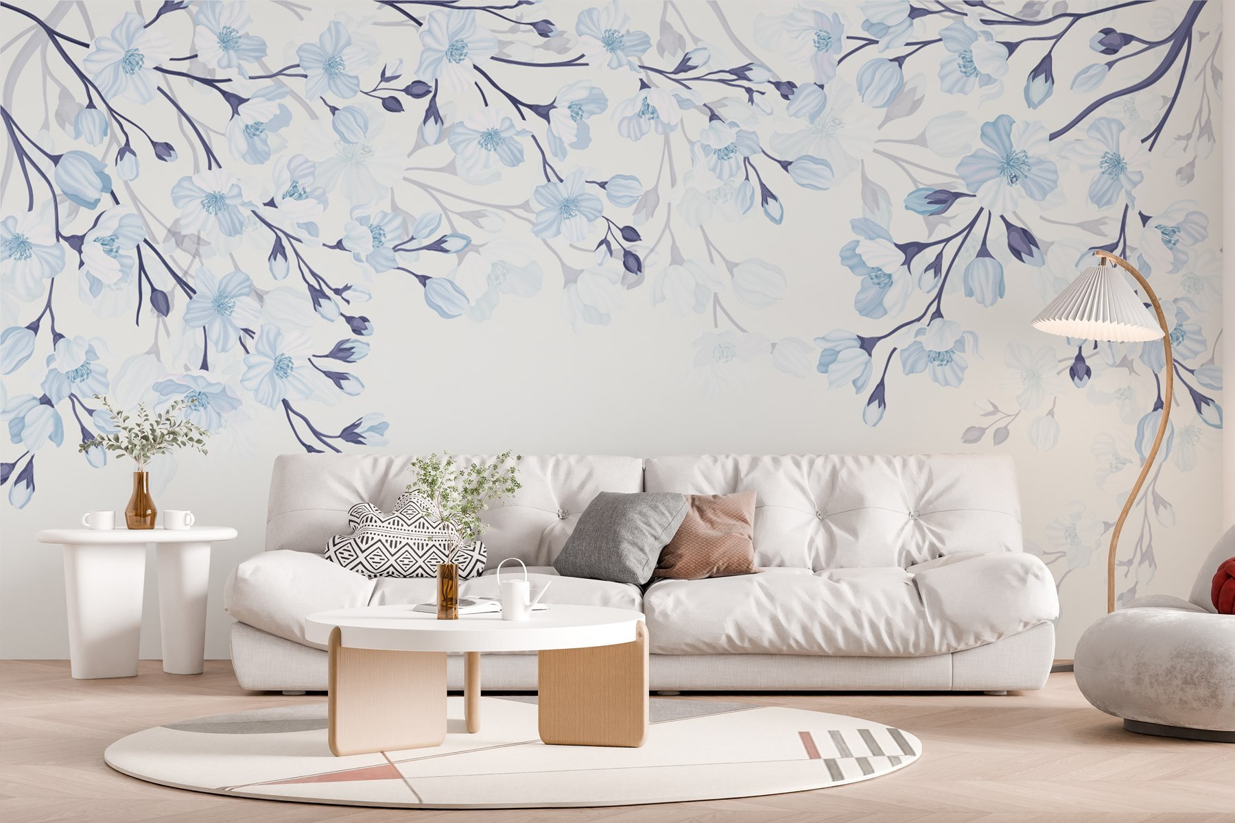 Proměňte jakýkoli prostor v klidné útočiště díky této krásné nástěnné malbě s jemnými bílými a modrými květy na měkkém pozadí. Představte si to: popíjíte čaj a jemný květinový vzor dodává uklidňující atmosféru, jako byste se procházeli zasněnou japonskou zahradou – bez komárů! Chladné tóny rozjasní místnost, aniž by byly příliš křiklavé, takže se skvěle hodí do každé atmosféry, ať už jde o útulný čtecí koutek, nebo elegantní obývací pokoj. Přátelé možná budou komentovat, jak klidně váš prostor působí, a vy můžete vědoucně přikyvovat – tato nástěnná malba dělá všechna kouzla. Je ideální pro vnesení nádechu přírody do interiéru, je to jako mít kvetoucí zahradu po celý rok – není třeba zalévat!