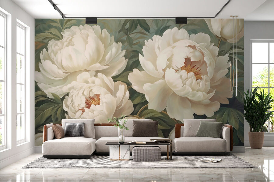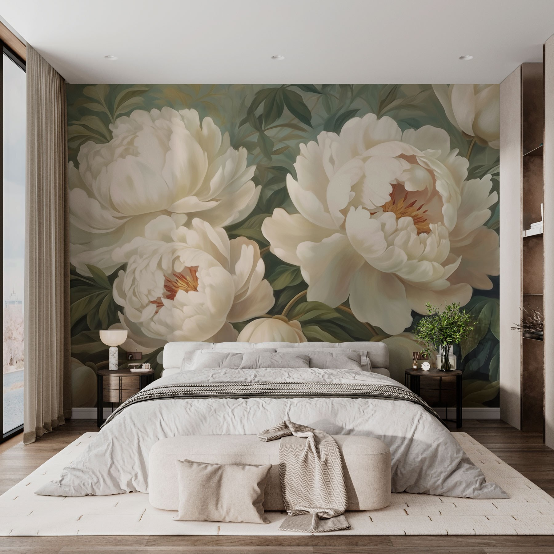 Proměňte každou místnost pomocí této okouzlující nástěnné malby, která zobrazuje svěží květy s jemnými bílými okvětními lístky. Představte si, že vejdete do prostoru, kde jemné pivoňky zachycují světlo a celý prostor působí jako klidné zahradní útočiště. Je ideální pro dny, kdy vám okolní svět připadá příliš chaotický – stačí se na něj podívat a *dýchat*.