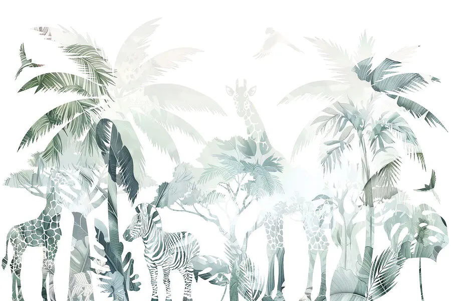 Proměňte svůj prostor v klidné útočiště s touto úžasnou nástěnnou malbou se skupinou zvířat v bujném lese. Představte si, že se každý den procházíte klidnou džunglí – jak skvělé to je? Tato fototapeta spojuje něžné žirafy, hravé zebry a živé palmy, a dodává tak vašemu domovu nádech kouzla přírody. Perfektně se hodí do útulného obývacího pokoje nebo hravého dětského pokoje a vybízí k pocitu dobrodružství a tepla. Navíc si jen představte, jak zábavné by bylo vysvětlovat přátelům, proč se vám v chodbě poflakuje zebra! Jednoduchý způsob, jak podnítit představivost a vyvolat radost v každodenním životě.