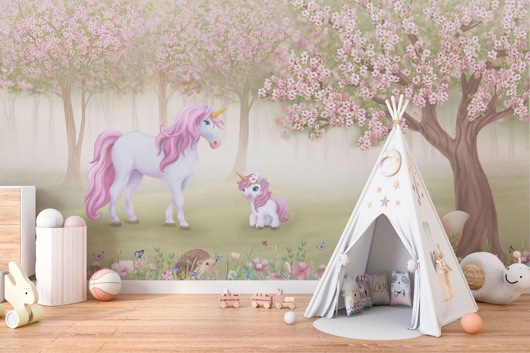 S touto okouzlující nástěnnou malbou s jednorožcem a jeho chlupatými přáteli proměníte každou místnost v rozmarnou říši divů. Představte si jemné růžové květy, které se jemně pohupují a naplňují vzduch sladkostí – ideální pro rozproudění radosti každý den. Duo jednorožců a roztomilých lesních zvířátek vybízí k jemné, hravé energii, které je těžké odolat. Představte si útulná odpoledne strávená čtením nebo sněním, kdy je krása přírody vzdálená pouhým pohledem. Tato nástěnná malba není jen dekorací – vypráví příběh a přináší teplo a kapku kouzla na stěny, které by potřebovaly trochu rozveselit. Ideální pro dětské prostory nebo pro každého, kdo je mladý srdcem!