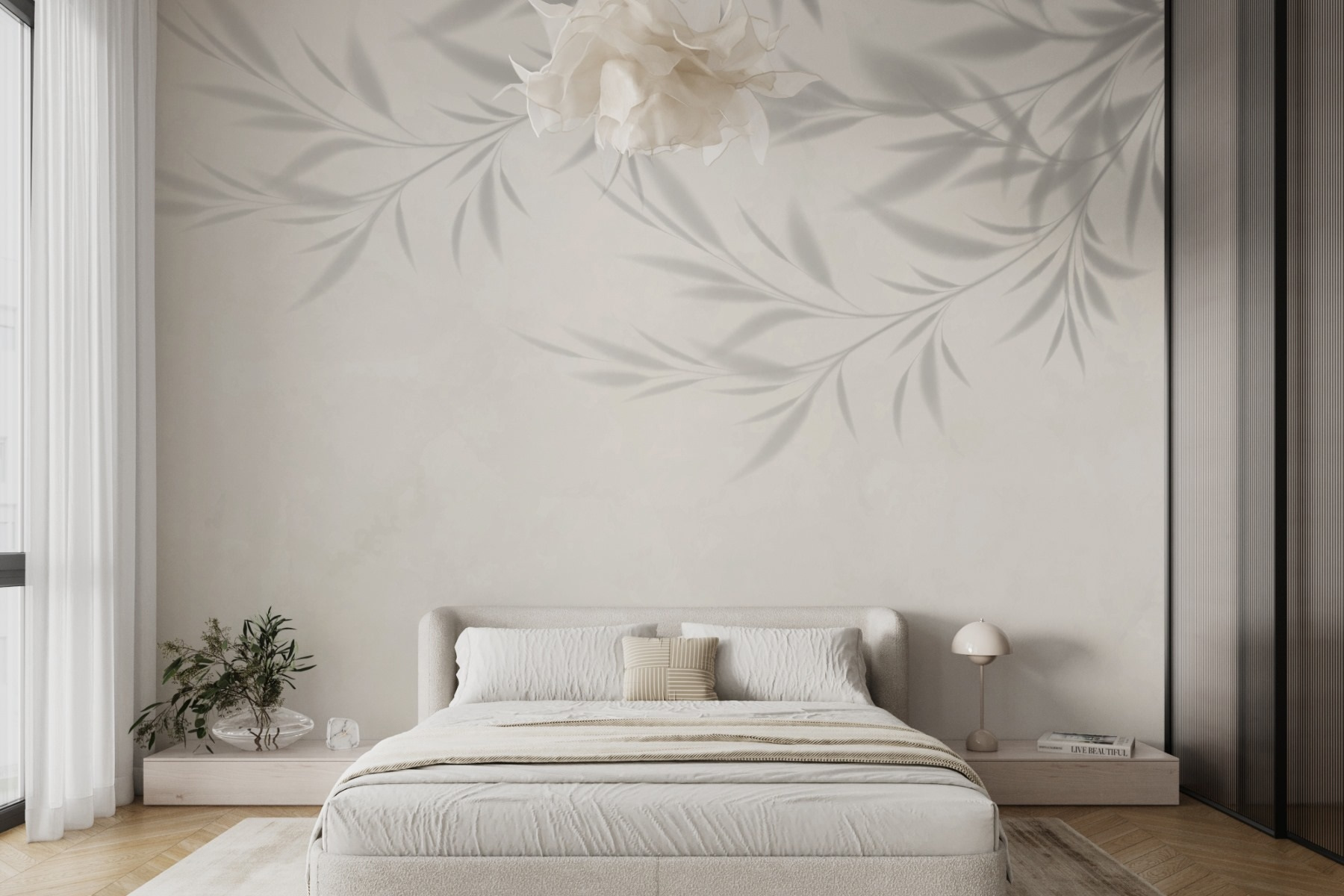 Proměňte svůj prostor pomocí okouzlující nástěnné malby “Stín listí na zdi”. Je to jako přenést do interiéru jemný lesní vánek – samozřejmě bez brouků! Tento vzor bez námahy tančí po stěně a vrhá jemné stíny, které napodobují eleganci přírody. Představte si, že se usadíte v útulném koutku, popíjíte čaj a necháváte se unášet siluetami listů do sluncem zalitého dne. Ideální pro každou místnost, je to klidná připomínka venkovního prostředí, s dostatečným šarmem, aby se každý zastavil a obdivoval. Vaše stěny vám poděkují a stejně tak vaši hosté, kteří si možná budou přát projít se po vaší stylové zahradě!