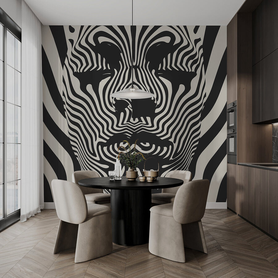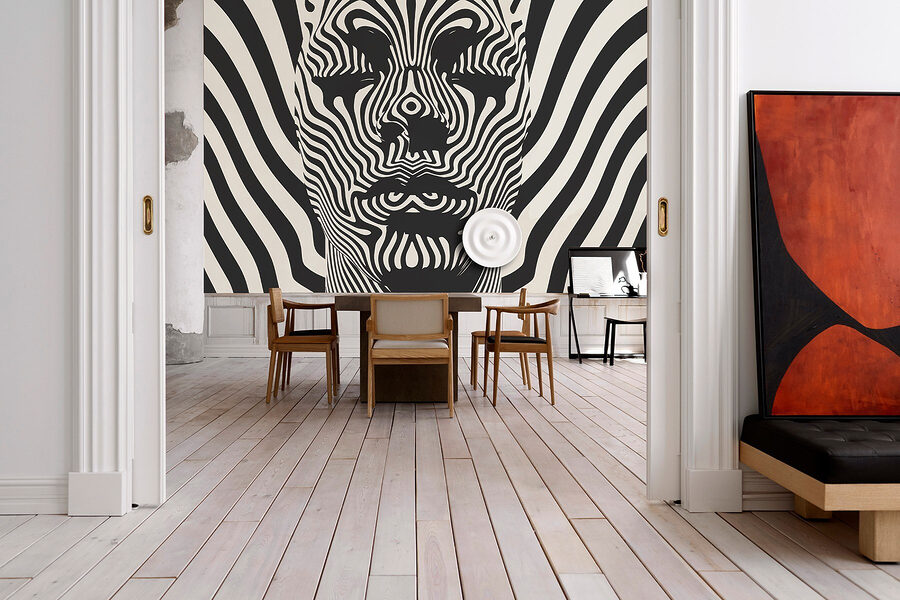 S touto výraznou černobílou fototapetou proměníte každou místnost v místo, kde se bude o něčem mluvit. Není to jen design, je to jako svérázný přítel, který vše tiše pozoruje, ale rozhodně upoutá pozornost. Hypnotizující linie se točí kolem jemně abstraktního obličeje, takže každý, kdo se na něj podívá, se pozastaví – jako když zahlédne mrak, který vypadá přesně jako dinosaurus.