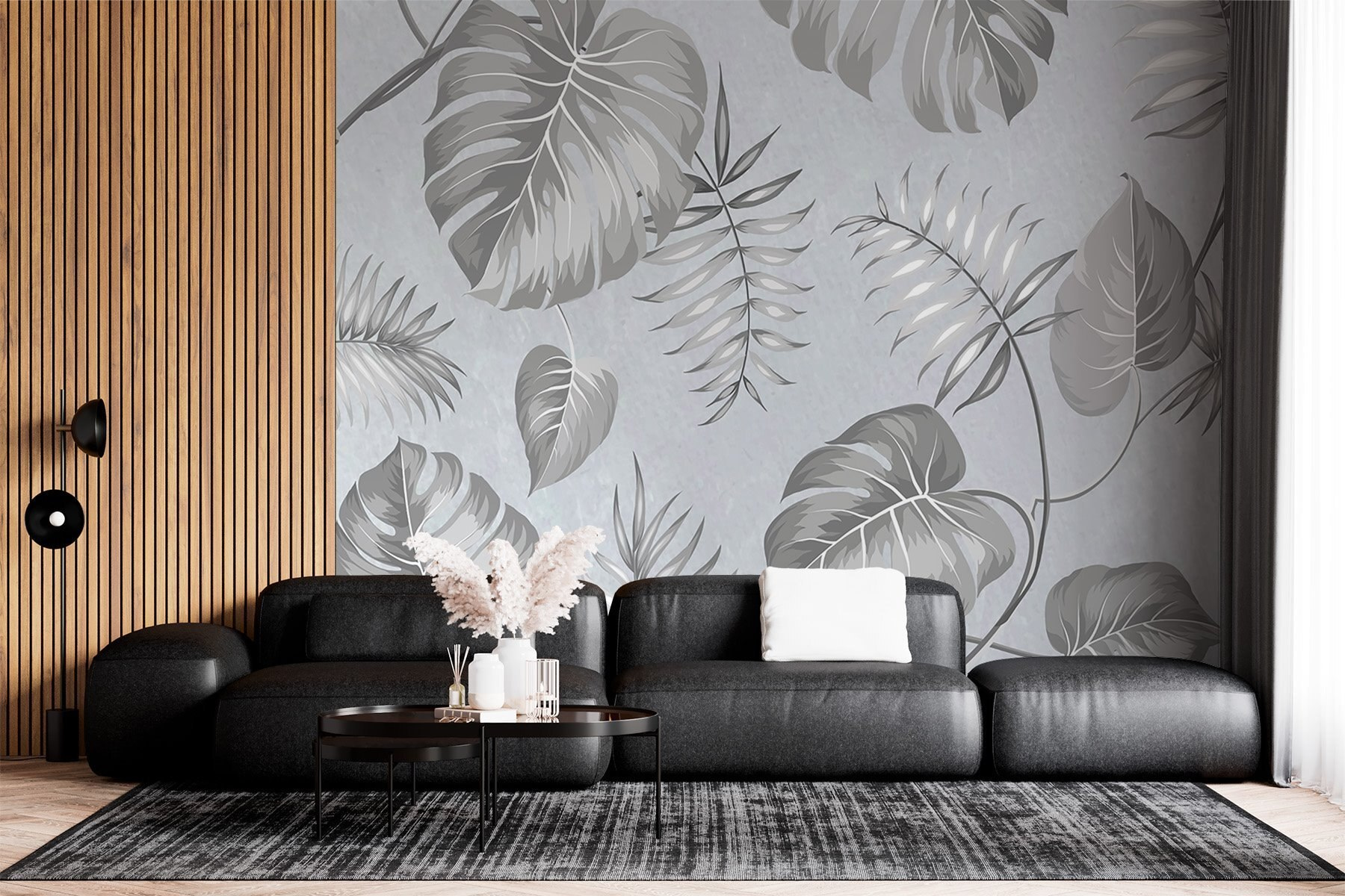 S touto stylovou šedobílou květinovou fototapetou proměníte každou místnost v oázu klidu. Představte si, že se každé ráno probouzíte obklopeni těmito zasněnými listy, které se jemně pohupují, jako by vám šeptaly tajemství tropů. Jemné odstíny vybízejí ke klidu a jsou ideální pro útulný čtecí koutek nebo živý obývací pokoj. Je to jako přenést si kousek přírody do interiéru – bez rizika zalévání! Přátelé se budou divit, jak může obyčejná stěna působit tak živě. Navíc je poměrně nenáročná na údržbu. Pohodlně se usaďte a nechte tuto nástěnnou malbu, aby se postarala o vaši dekorativní hru. Možná se dokonce přistihnete, jak sníte o útěku na ostrov.